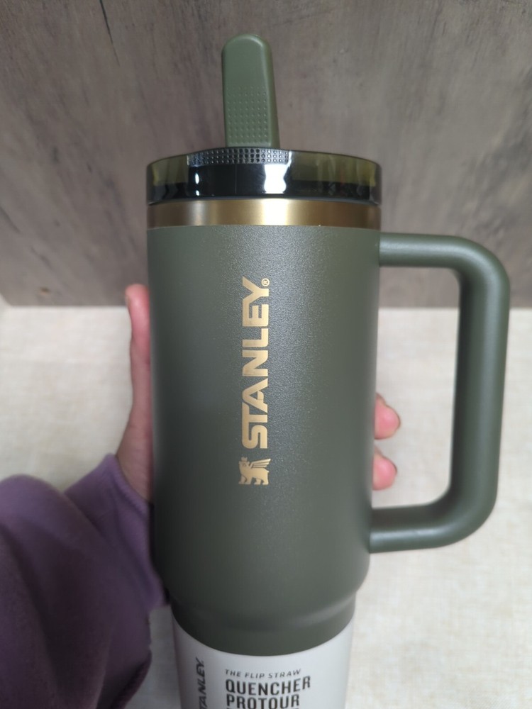 The Stanley The Quencher ProTour Flip Straw 40oz Tumbler in Cypress Green is a three-piece tumbler made of stainless steel and BPA-free plastic. It features a drink-through lid, keeping cold beverages cold for 11 hours. The tumbler has a solid color design with a handle for easy carrying. It is suitable for teens, adults, girls, and kids, with a 40 oz capacity and insulated construction. Perfect for cold drinks on the go.