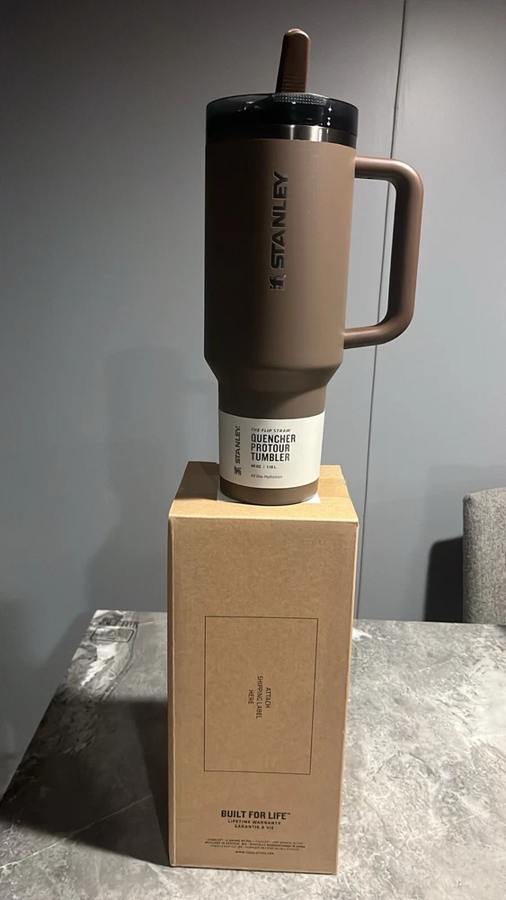 The Stanley Quencher ProTour Flip Straw 40oz Tumbler in Espresso Brown is a three-piece tumbler with a solid color design featuring a happy character. This tumbler has a drink-through lid and can keep beverages cold for up to 11 hours. Made of stainless steel, steel, and BPA-free plastic, it is insulated and has a 40oz capacity. With a handle for easy carrying, this tumbler is ideal for teens, adults, girls, and kids who enjoy cold drinks on the go. The item comes with a lifetime manufacturer warranty and is recommended for hand wash only.