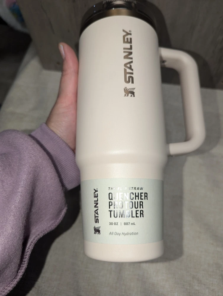 The Stanley Quencher ProTour Flip Straw 30oz Tumbler in Pink is a three-piece set made of stainless steel and BPA-free plastic. It features a solid color design with a drink-through lid, keeping beverages cold for 11 hours. This tumbler has a handle, is insulated, and is suitable for cold drinks. It is designed for teens, adults, girls, and kids, with a 30oz capacity and a lifetime warranty.