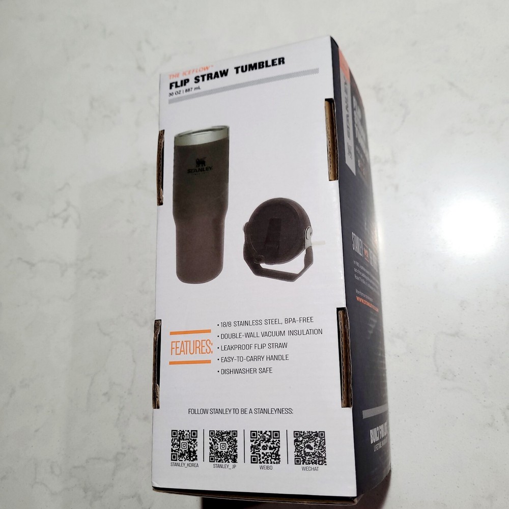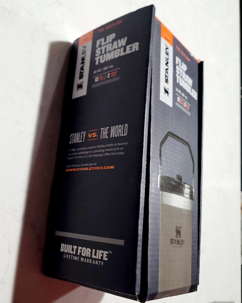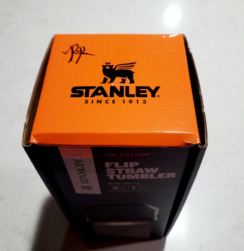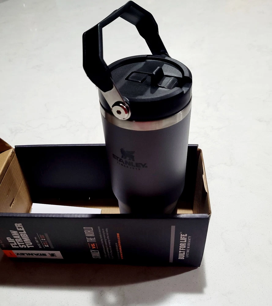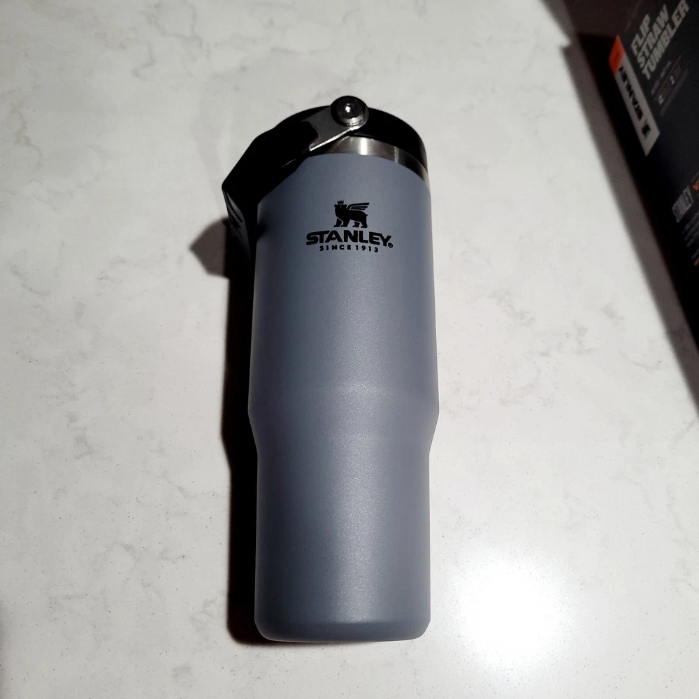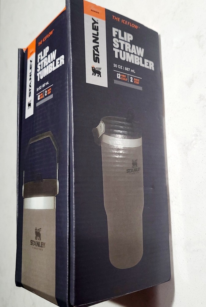 NEW WITH BOX. IN EXCELLENT CONDITION. NO STAINS OR DAMAGE. PLEASE VIEW ALL PHOTOS ABOVE FOR PROOF OF CONDITION. STORED IN A CLIMATE CONTROLLED SMOKE-FREE AND PET-FREE HOME. SHIPS PROMPTLY AND SECURELY. The NEW Stanley Tumbler IceFlow Flip Straw 30 Oz Cup in a rare Gray & Black color is a durable and stylish option for keeping your cold beverages cold for up to 12 hours. Made from aluminum, stainless steel, or BPA-Free plastic, this tumbler features a spill-proof lid with a drink-through flip straw for easy sipping. Perfect for teens, adults, and kids, this insulated tumbler also includes a handle for convenient carrying and is machine washable for easy care. With a sporty theme and a capacity of 30 oz, this Stanley tumbler is a practical and trendy choice for on-the-go hydration.
