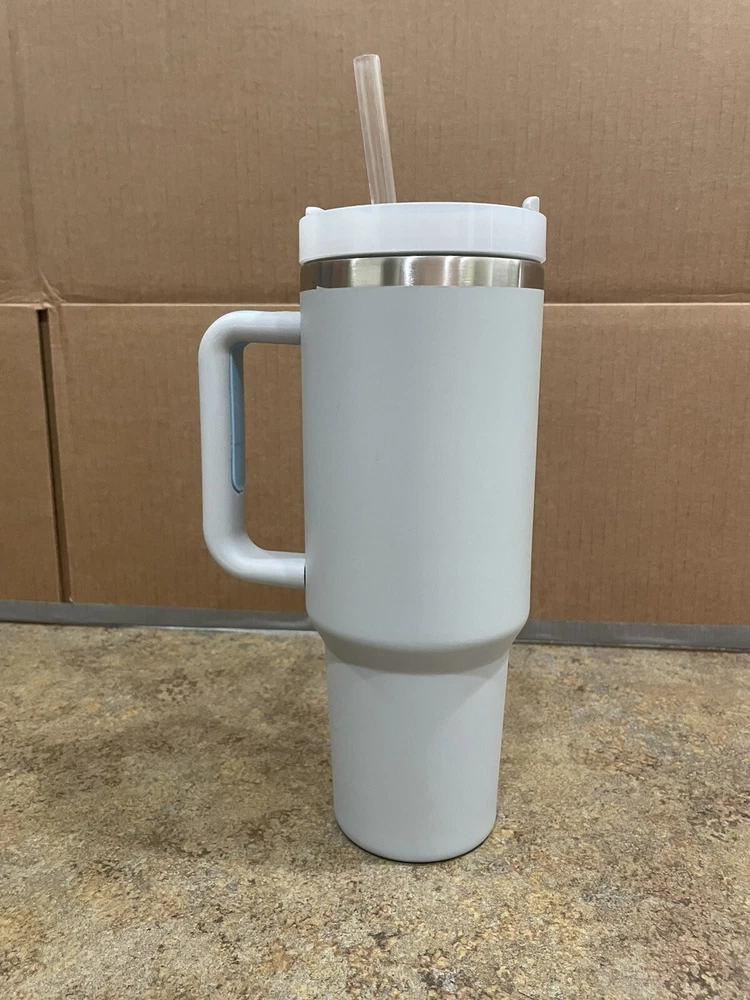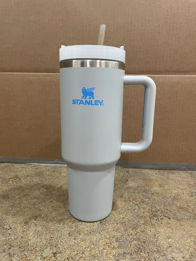 Stanley tumbler light blue 40 oz. Barely used. Comes with hard plastic straw and lid.