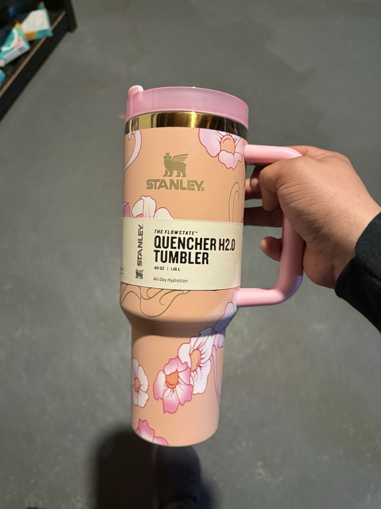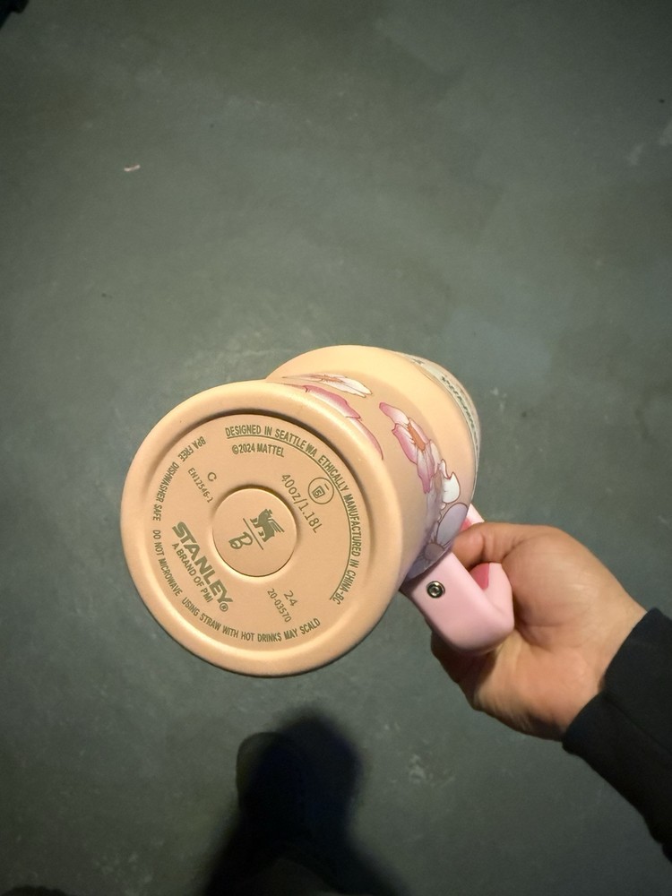 Embrace the nostalgia with the Stanley X Barbie Limited Edition ‘80s Peaches n Cream 40oz Quencher Tumbler, a delightful fusion of vintage charm and modern convenience. Crafted with a robust combination of stainless steel, steel, and BPA-free plastic, this tumbler is designed to withstand the demands of daily use. Whether you're sipping hot coffee on a chilly morning or enjoying a cold beverage on a sunny afternoon, this tumbler's versatility caters to all your beverage needs. The tumbler features a spill-proof design, complete with a convenient handle, a drink-through lid, and a straw for easy sipping. Its 40 oz capacity is perfect for both kids and adults, making it an ideal choice for any member of the family. Adorned with a charming beige floral pattern and the iconic Barbie silhouette, it's not just a functional collectible but also a stylish addition to your kitchen or office ensemble.