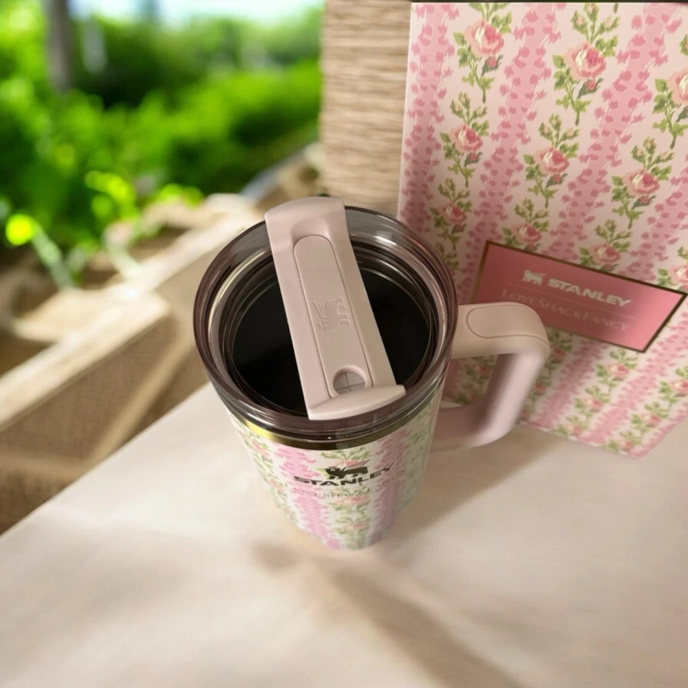 No dust bag Introducing the Stanley X Love Shack Fancy Quencher Tumbler, a must-have for all tumbler enthusiasts out there! This 40 oz tumbler features a beautiful blooming heirloom design in a stunning pink color, making it a perfect addition to your kitchen collection. Crafted by Stanley, a renowned brand in the industry, this tumbler is made to last and keep your drinks hot or cold for hours. Its vacuum insulation technology is top-notch and ensures that your drinks stay fresh for longer. Ideal for Home & Garden, Kitchen, Dining & Bar, and Kitchen Storage & Organization categories, this tumbler is a versatile item that can fit all your needs. Get your hands on this Stanley X Love Shack Fancy Quencher Tumbler and enjoy your drinks in style!