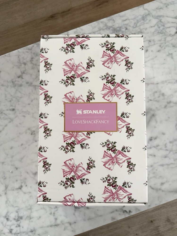 Embrace the harmony of functionality and style with the Stanley x LoveShackFancy Tumbler. This 40 oz Quencher Blooming Heirloom edition combines the rugged durability of stainless steel with a delicate floral pattern, offering a pink hue that adds a soft touch to your drinkware collection. Designed to keep beverages hot or cold, this tumbler is as versatile as it is visually appealing. The tumbler features a convenient drink-through lid, allowing for easy sipping without the hassle of removing the lid. Whether you're enjoying a hot coffee on your morning commute or a cold water refill throughout the day, this tumbler is suited for all your beverage needs, making it a practical addition to your daily routine.
