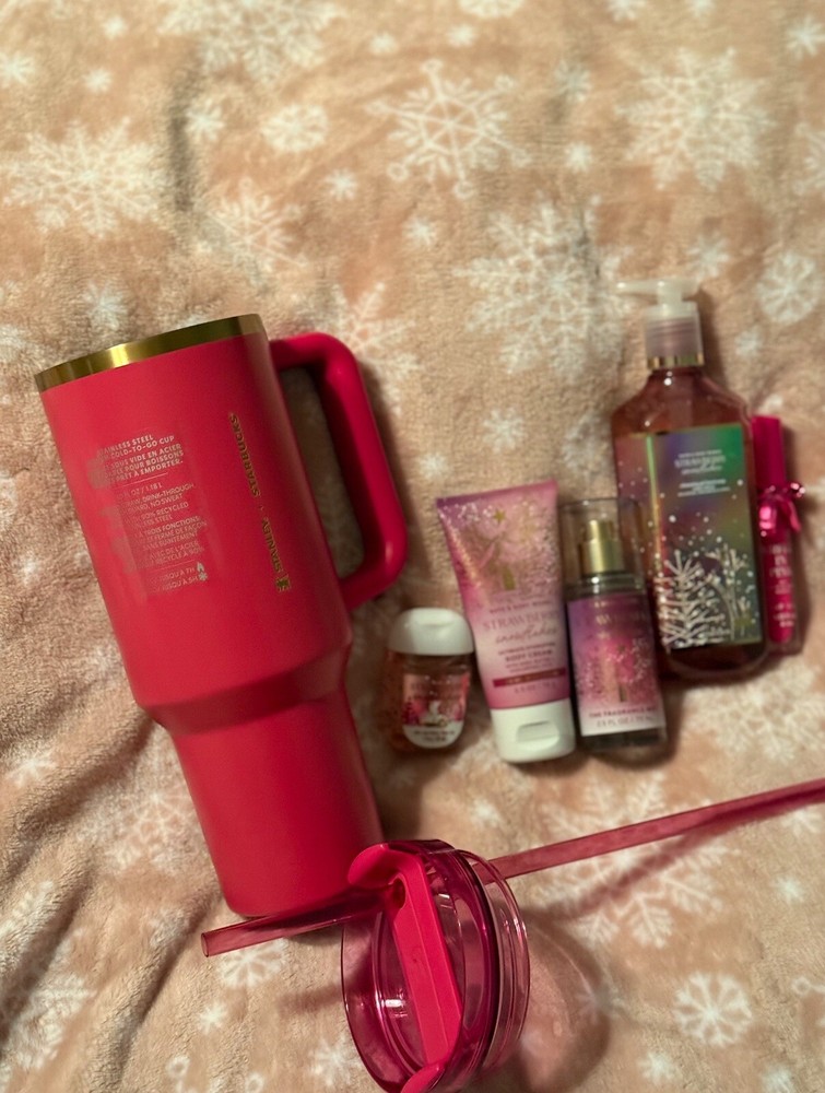 Stanley x Starbucks Holiday 2024 Berry Glitter Pink 40Oz Tumbler/ Bath and Body Works Gift Set. Please look at the pictures for details. Feel free to ask any questions, or make an offer. Thank you.