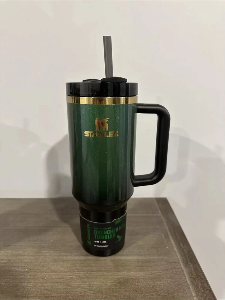 Introducing the Stanley x Target Elphaba 40OZ H2.0 FlowState Tumbler, a perfect addition to your collection. This three-piece tumbler set is made of stainless steel, steel, and BPA-free plastic, and comes with a drink-through lid, making it perfect for both hot and cold beverages. With a capacity of 1 liter, it keeps your drinks cold for up to 12 hours and hot for up to 8 hours. The tumbler is machine washable up to 85°F, and is suitable for recycling. It also features a handle, straw, and is insulated, making it perfect for any occasion. The tumbler is designed with a solid color pattern in green, and is adorned with the iconic Elphaba character from the popular cartoon series. This tumbler set is a must-have for sports enthusiasts, teens, boys, girls, and anyone who loves hot or cold beverages.