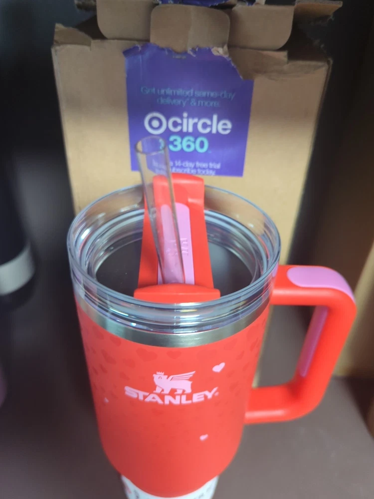 The Stanley x Target Exclusive Valentine’s Day 2025 Red Sweet Hearts 40oz Tumbler is a three-piece tumbler set perfect for keeping beverages hot or cold for up to 4 hours and 8 hours, respectively. This stainless steel tumbler features a charming hearts pattern, making it a lovely gift for Valentine's Day. It comes with a lid, straw, and is insulated to maintain the temperature of your drinks. With a 30 oz capacity, this tumbler is designed for both adults and kids, offering a stylish and functional way to enjoy your favorite drinks on the go.