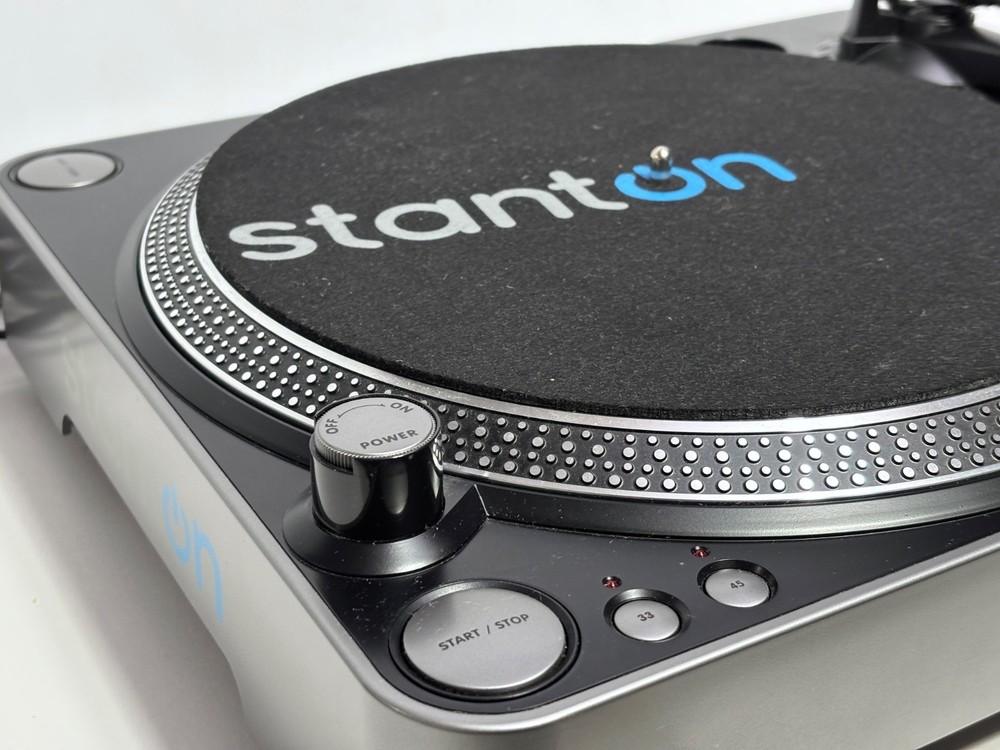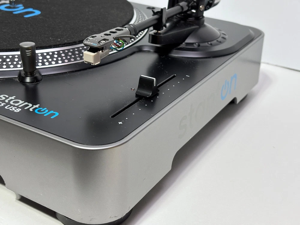 The Stanton T.55 USB Belt Drive DJ Turntable is a high-quality home turntable designed for enthusiasts of vinyl records. Its USB connectivity allows for easy conversion of vinyl records to digital format, making it a convenient option for anyone looking to preserve their music collection or share their favorite songs online. With the reputable Stanton brand behind it, this turntable is sure to deliver exceptional sound quality and performance for all your DJing and music listening needs. Very Good overall condition works well, new needle installed, Comes with power cable, USB Cable & RCA Cable. See video of it in Action!