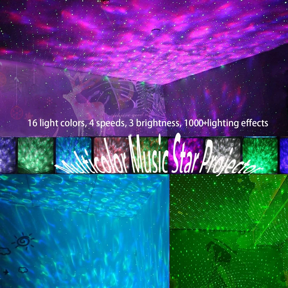 Upgraded 4 in 1 Star Projector: This galaxy projector for bedroom has been upgraded to 4 in 1 version of starlight projector, galaxy light, Bluetooth speaker and night light. You can customize the light color, brightness, and speed to achieve thousands of different projector lights effects, brings you and your loved one into a magical world. Imagine that your room is flowing with colorful galaxy lights as if you are in starry sky, mysterious and shocking. HiFi Music Speaker & Sound Activated: Equipped with Bluetooth 5.0 speaker, our LED galaxy projector for bedroom has a cool feature that you can have stars and transforming RGBW nebula spark rhythmically to the beat of the music, creating a fun and energetic party atmosphere. By simply connecting Bluetooth or inserting a USB drive, you can combine our galaxy star projector with your favorite tunes, brings you an unprecedented listening experience. Starry Night Light Projector for Helping Sleep: With the waves of nebulae swirl regularly and thousands of green stars fade in and out, a soothing ambiance will fill your room instantly. You can play lullabies via Bluetooth and set volume, lighting effects and brightness, helping your child fall asleep effectively. It is a perfect star lights for bedroom. Note: Night sky projector is designed with open Bluetooth, remember to turn off Bluetooth via control when you don't need this function. Remote Control and Timer Settings: The galaxy night light comes with a remote control, which can be used within 16 feet. Whether you are sitting on the sofa or lying in bed, you can easily set the atmosphere you like by adjusting the brightness, lighting mode, speed, music and volume. 4H is automatically shutdown by default to save energy. For your convenience, you can also set 1H/2H timing. Note: 2 Pcs of 3A batteries required for the remote control are not included in the product package. Cool Light for Teen Room Decor: Space projector for bedroom cover up to 500 sq.ff. Sky light projector create a relaxing and romantic ambient lighting, a cool stuff tiktok trend items ceiling projector for your room luces. Led stuff galaxy lamp can be widely used as room light show projector, wall light, mood light, gaming light, cute things for bedroom, halloween decor lights, car lights interior, room decor for teen girls, home theater accessories, birthday, holiday, festival, party lights Amazing Gift Idea: Searching for the perfect gift? Look no further! Our planetarium projector lights for bedroom is a remarkable choice for both kids and adults. Ideal for holidays, birthdays, or special occasions, this cute projection night light brings the wonder of starry nights and planetariums to your life. Delight your loved ones and grant them the joy of falling asleep under a mesmerizing starry sky lite. What a cool things for your room!