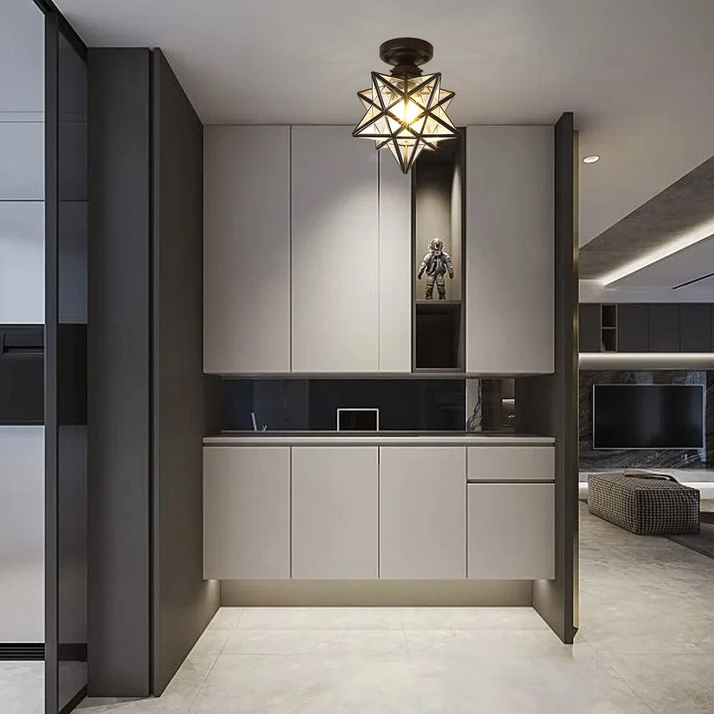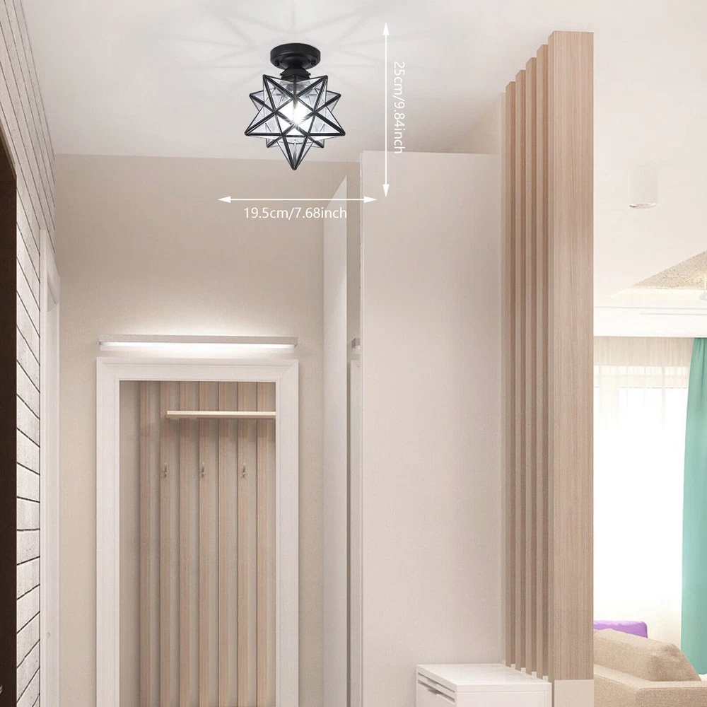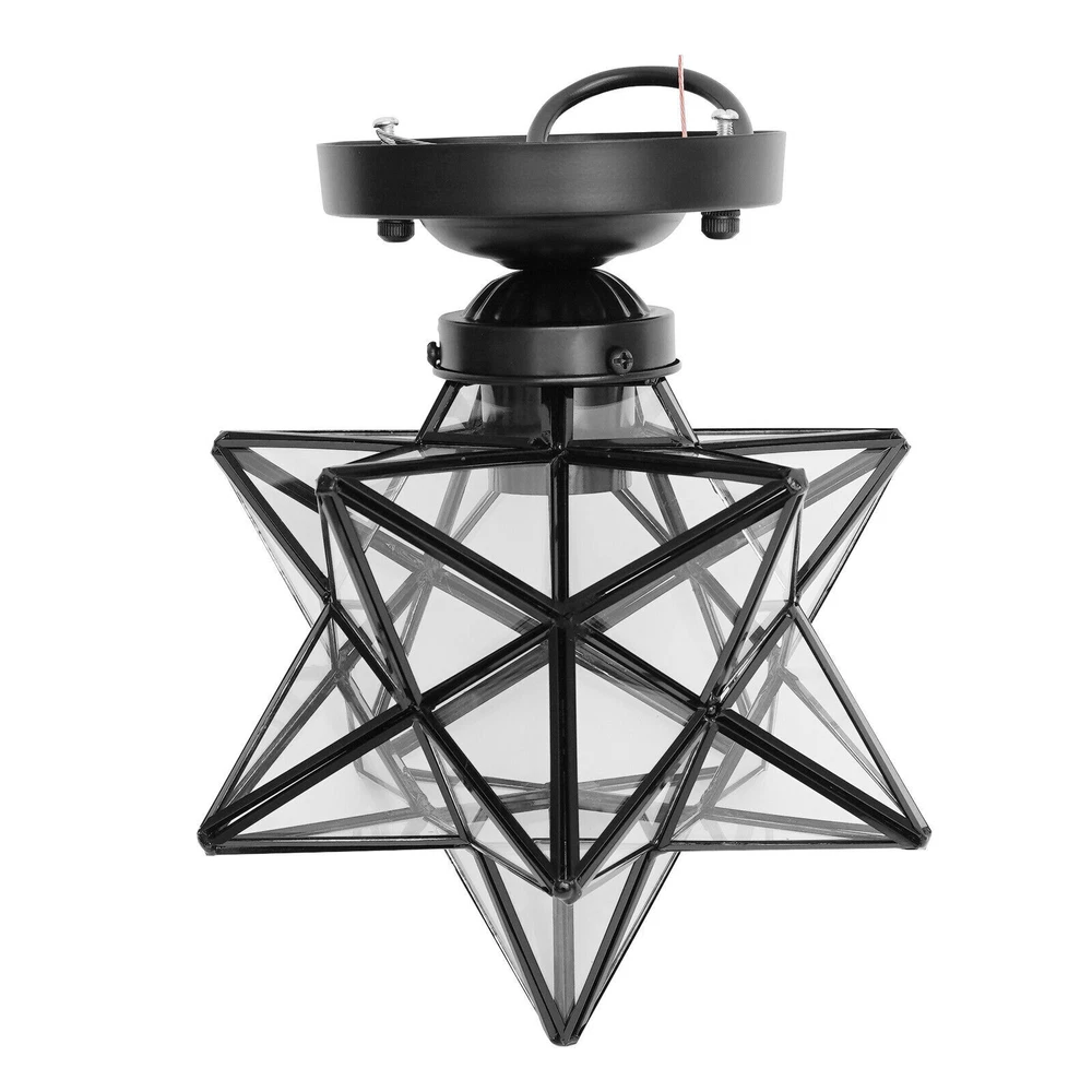 Star Shaped Glass Hanging Lamp Flush Mount Pendant Light Ceiling Chandelier