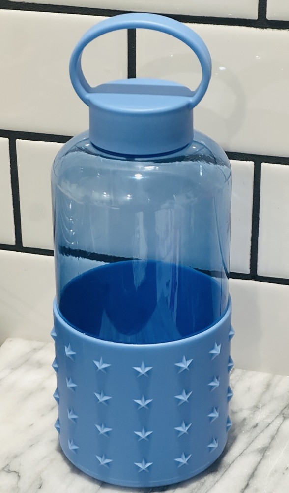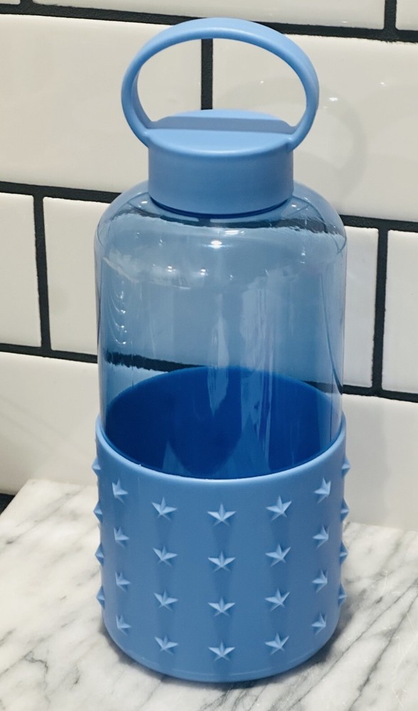 The "Star Studded Water Bottle" is a 32 fl oz acrylic water bottle featuring a push cap for easy access. With a blue color scheme and star-themed design, this reusable bottle is ideal for school or work. The bottle is branded by Star and comes as a set with just the bottle included. It is a classic model, perfect for staying hydrated on the go. Personalization is not available for this product.