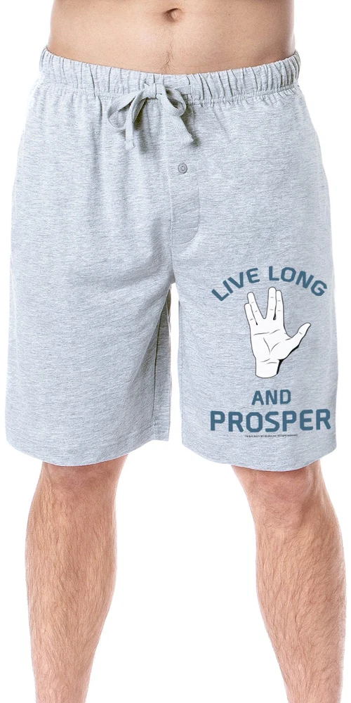 Space: The Final Frontier. These are the voyages of the Starship USS Enterprise. Its continuing mission: to explore strange new worlds, to seek out new life and new civilizations, to boldly go where no man has gone before! These Star Trek shorts features Spock's hand with the words "Live Long and Prosper." The pajama shorts themselves are made of a soft 60% cotton and 40% polyester fabric blend, for casual wear and lounging about! These are the best! Star Trek Mens' Spock Live Long And Prosper Sleep Pajama Shorts Space: The Final Frontier. These are the voyages of the Starship USS Enterprise. Its continuing mission: to explore strange new worlds, to seek out new life and new civilizations, to boldly go where no man has gone before! These Star Trek shorts features Spock's hand with the words "Live Long and Prosper." The pajama shorts themselves are made of a soft 60% cotton and 40% polyester fabric blend, for casual wear and lounging about! These are the best! Product Details Color Grey Size Large Brand Intimo Feature THESE ARE LOUNGE SHORTS - Intimo specializes in nice, sleepwear for men, women, boys, and girls. Intimo is the industry leader in pop culture products and apparel that deal with the entertainment industry in comic books, tv shows, movies, music, sports, and what's trending.
