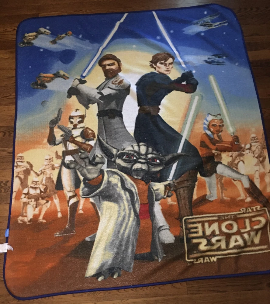 Star Wars Clone Wars Microfleece Blanket Throw 52" x 61" Anakin Skywalker Blanket is preowned but in great condition, no stains or tears and is still not washed out. Feel free to ask any questions about this item, all of our items come from a smoke free environment.