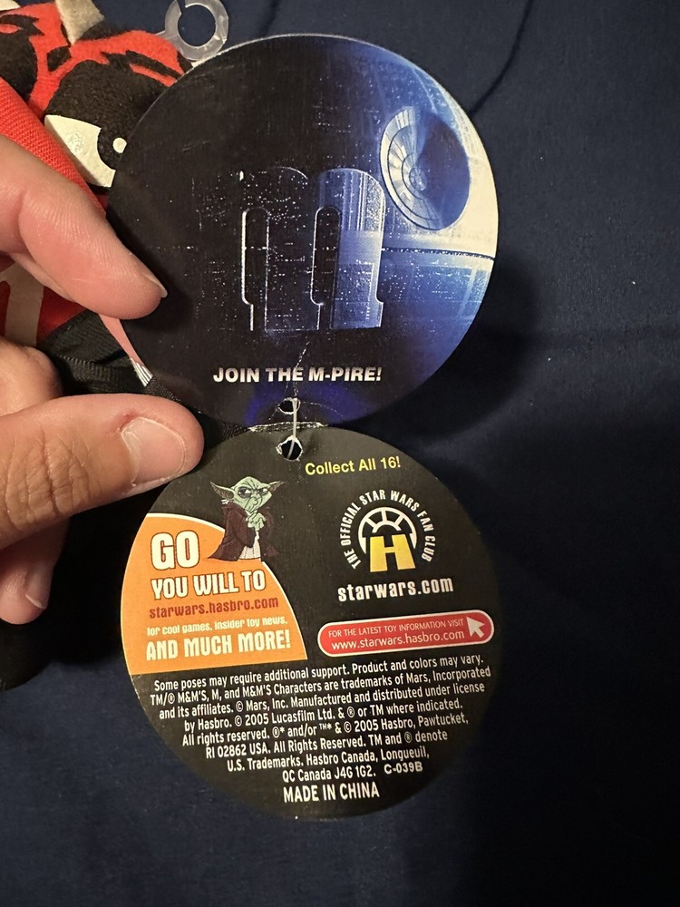 This Star Wars Chocolate mPIRE M&M's Red as Darth Maul 6" Stuffed Plush is a must-have for any Star Wars fan. Made by Hasbro in 2005, this small (6-14 in) plush toy is perfect for collectors and kids alike. The red color gives it a vibrant and eye-catching look, while the soft and cuddly texture makes it perfect for snuggling with. This plush toy is officially licensed and manufactured in China, ensuring its high quality and authenticity. The Star Wars character family adds to its appeal, making it a great addition to any Star Wars collection. Get yours today and show off your love for Star Wars!