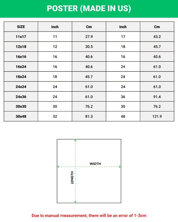 All of our posters are reprints! Make your room more colorful and add characters to your space with this simple custom poster. Made from high-quality paper, our posters are perfect to hang on the wall. You can easily decorate any space from a party, bedroom, bathroom, kids’ room, living room, office, dorm, and more with our print-on-demand poster without a frame. High-quality resin-coated photo-base paper Satin photo finish, maximum color gamut, dmax, and image resolution Heavyweight (230 gsm); 9 mil base Ships in protective tube Lasts 95 years inside. 5 years in direct sunlight Available in 5 sizes for easy framing, available in the following: 12x18” | 16x24” | 18x24” | 24x36” | 32x48” Postage & Packing: Your print(s) will be carefully rolled up and shipped in protective tube. Made and shipped from US. Photo frames shown are for illustrative purposes only and are NOT included. Colors may vary due to different monitor types and display settings. You can browse my shop for lots more beautiful, contemporary wall art. Thank you for visiting! If you need further assistance, please contact me. If you are satisfied with the product and service, please leave a positive review. If not, don't rush to leave a negative review; contact me so I can resolve the issue for you.