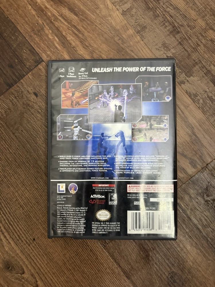 The product is a complete copy of Star Wars Jedi Outcast for the Nintendo GameCube, released in 2002. The game is part of the Star Wars: Dark Forces Series, published by LucasArts, and carries a T-Teen rating. The NTSC-U/C (US/Canada) region code ensures it will work on consoles in the specified region. In addition to being a shooter genre game, it includes the manual, making it a sought-after collector's item for fans of the Star Wars franchise and video game enthusiasts. Message with any questions fast shipping