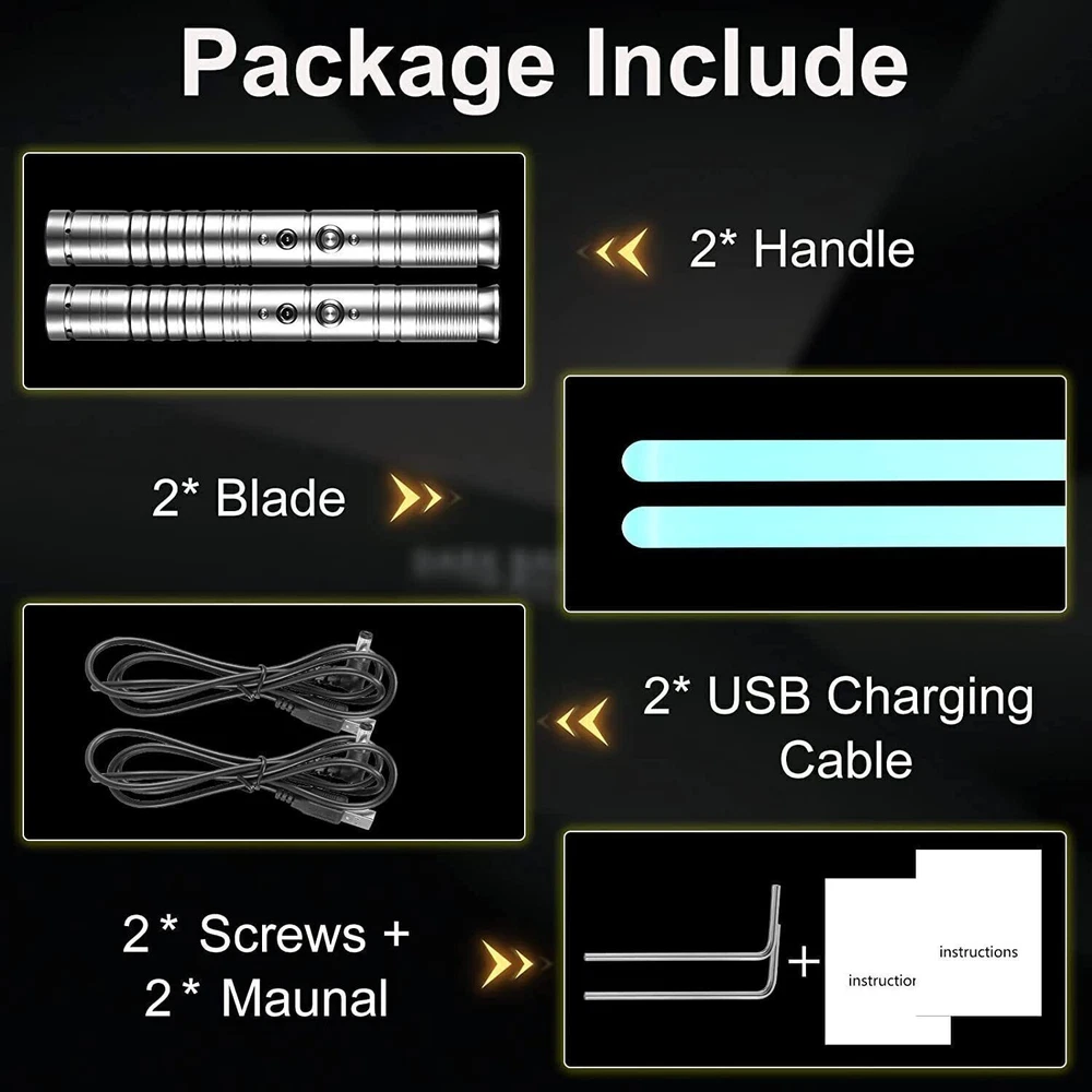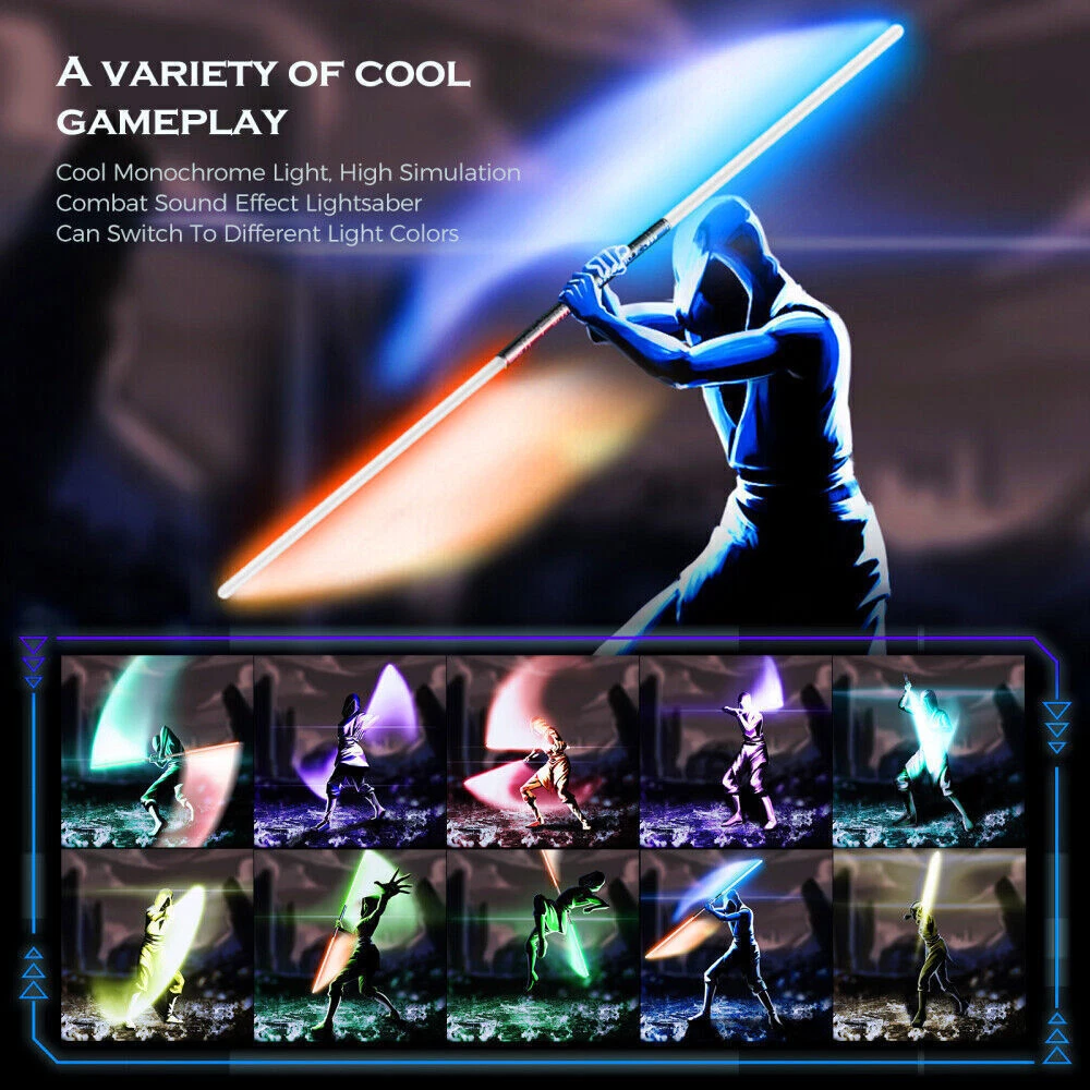 Star Wars Lightsaber Darth Maul Saber Double Dual Staff (Lot of 2 Single Sabers) RGB 7 color variable metal handle lightsaber, 2 in 1 FX duel lightsaber with sound effect mode, LED lightsaber with metal aluminum handle with tone color, USB charging lightsaber (2 pcs Silver) Specifications 【High quality material & 2 in 1 】-The metal handle is oxidized, and the handle is bright and sensitive. The blade is made of environmentally friendly PC material with high transparency and durability. It can simulate the sound in the movie, allowing you to enjoy the thrill of fighting. When you perform different combat actions and blows, different sounds will be made. 【 Multiple colors and sounds 】-RGB lightsaber can emit 7 different colors for you to choose, which can be applied to various entertainment scenes. And can make sounds, to bring you immersive entertainment effects! 【USB charging lightsaber 】-lightsaber built-in lithium battery, USB charging cable. The input power is 5 V / 1 A, so any device that can output the same power as the USB port can charge the lightsaber. Charging is very convenient. 【 Applicable scenarios 】 -RGB lightsaber is very suitable for parties, outdoor sports, family entertainment, outdoor camping, different colors and sounds can bring you different entertainment effects, and can make motion sounds during the swing and beating process. It is also a perfect gift! 【 Warranty Service and Commitment】 -We provide a 30-day unconditional 100% money-back guarantee, please rest assured to buy. If you have any questions, please contact us. Or enter our store to buy more styles of lightsabers. Specifications Charging time: 2-3 hours Charging voltage: 5V (max) Material: aluminum alloy, high-quality PC Quantity: 2 pcs Battery: 18650, 3.7V Light group: 3-12W Mode: Breathing mode 1 light saber Overall Length: 30.31" (Hilt to Blade Tip) 2 in 1 light saber Overall Length:59.45"(Blade Tip to Blade Tip) Saber hilt Length: 8.78" Saber blade Length:22.44" (OD is 7/8" Method of operation 1. Short press 1 card machine 2. Press the button 1 time to flash 3. Press the button 2 times to switch colors 4. Press the button 3 times to turn on the blinking 5. Press the button 4 times to turn off/on the sound 6. Press and hold the button for 5 seconds to shut down Tips 1. This product has a built-in rechargeable lithium battery, which is not waterproof and should not be in contact with water! 2. The blade is detachable, and the hilt is not allowed to be disassembled! Our light saber advantages: Design: 2pack Sabers can be merge to a Double Blade Saber like the saber of Darth Maul Battery: more stable and safety Chargeable Lithium ion battery. Light: RGB LED with 7 colors changeable lightcolor( cool white, green, red, arctic blue, deep blue, purple, yellow) Sound: It simulates the sound in movies to make you enjoy the thrill of battle. Easy to use: We provide detailed instructions to guide you to be familiar with and use every function of the light saber. Payment policy PayPal is our preferred method of payment. If you do not have a PayPal account, all major credit cards are gladly accepted through PayPal as the payment processor. PayPal offers great buyer and seller protection. Your order will be processed pending receipt of cleared payment through PayPal. Sales tax may be charged depending on your location. Shipping policy We provide fast, free shipping. Most items are shipped within 2-5 business days of receiving cleared payment. We ship to the lower 48 contiguous United States only. We do not ship to P.O. Boxes or APOs. For select items, we ship internationally through eBay?s Global Shipping Program. We do ship most of our smaller items internationally using eBays Global Shipping Program. If ordering electrical items outside of the U.S., please note that they will come equipped with a standard U.S. voltage plugs. You will need a suitable adapter to use the item in your country. Certain restrictions apply. Standard or Economy Shipping is ALWAYS FREE! You will be notified via eBay messages as soon as your items ship. Special Notice for Freight Items: If an item ships via Freight (Truck) Delivery, a valid phone number will be required so that we can contact you to schedule delivery. The item may be delivered with curbside delivery. An adult signature will be required. Please be sure to have available help on hand to assist you with moving the item to the desired location in or outside of your home. Freight items must be inspected upon delivery. In the unlikely event that damaged is observed, you MUST refuse delivery and note the damage on the shipping receipt and send it back via the Freight carrier. Returns will not be accepted on Freight items after they have been delivered, inspected, and the driver has left the premises. Returns policy We offer a 30 day return/exchange policy for most of our products. You can request a refund if you are dissatisfied for any reason with your product. (Restocking Fee May Apply). Only factory defects are accepted as a reason for a return. In the case of factory defects, if available, we will replace the product for you. When returning an item, it must be in all of the original packaging and include all of the original accessories or items that came with it. The item and package should be in original and perfect condition. You will be required to cover shipping on the return of non-defective items. All returns MUST be done within 30 days of date of purchase. Please note that we cannot give refunds or replacements after the 30 day limit has expired. When sending in a return, please note that it can take up to 7 business days for the return to be processed. We do our best to process as quickly as possible. We are extremely fair, and in the rare event of something out of the ordinary happening with our products or shipping, we will gladly work with you to find a fair resolution. Contact Welcome to our eBay store! As an emerging leader in manufacturing and