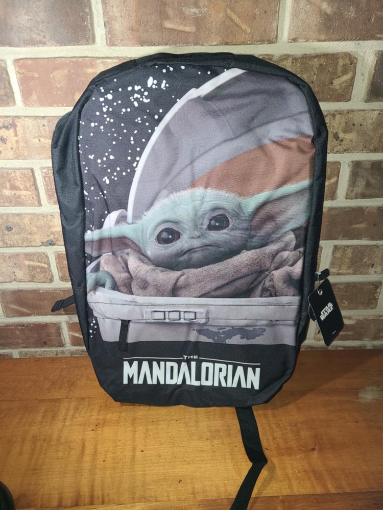 Star Wars Mandalorin Grogu The Child Backpack Full Size Lightweight Laptop Sleeve NEW You'll have no problem delivering The Child to the client with this officially licensed The Child Backpack. This backpack features an adorably cute The Child on the front and plenty of space for all the Beskar you can carry. If you're a fan of The Mandalorian then this backpack is perfect for adding to your style! Officially licensed Adjustable padded straps Strap Length: About 35" 1 large outer front zipper pocket 1 internal laptop sleeve Zipper closure Fully lined Dimensions: 20" H x 13" W x 6" D Material: Polyester Care: Spot clean Imported Check out our other listings for combined shipping and thanks for looking! **Veteran Preference Female Owned Business**