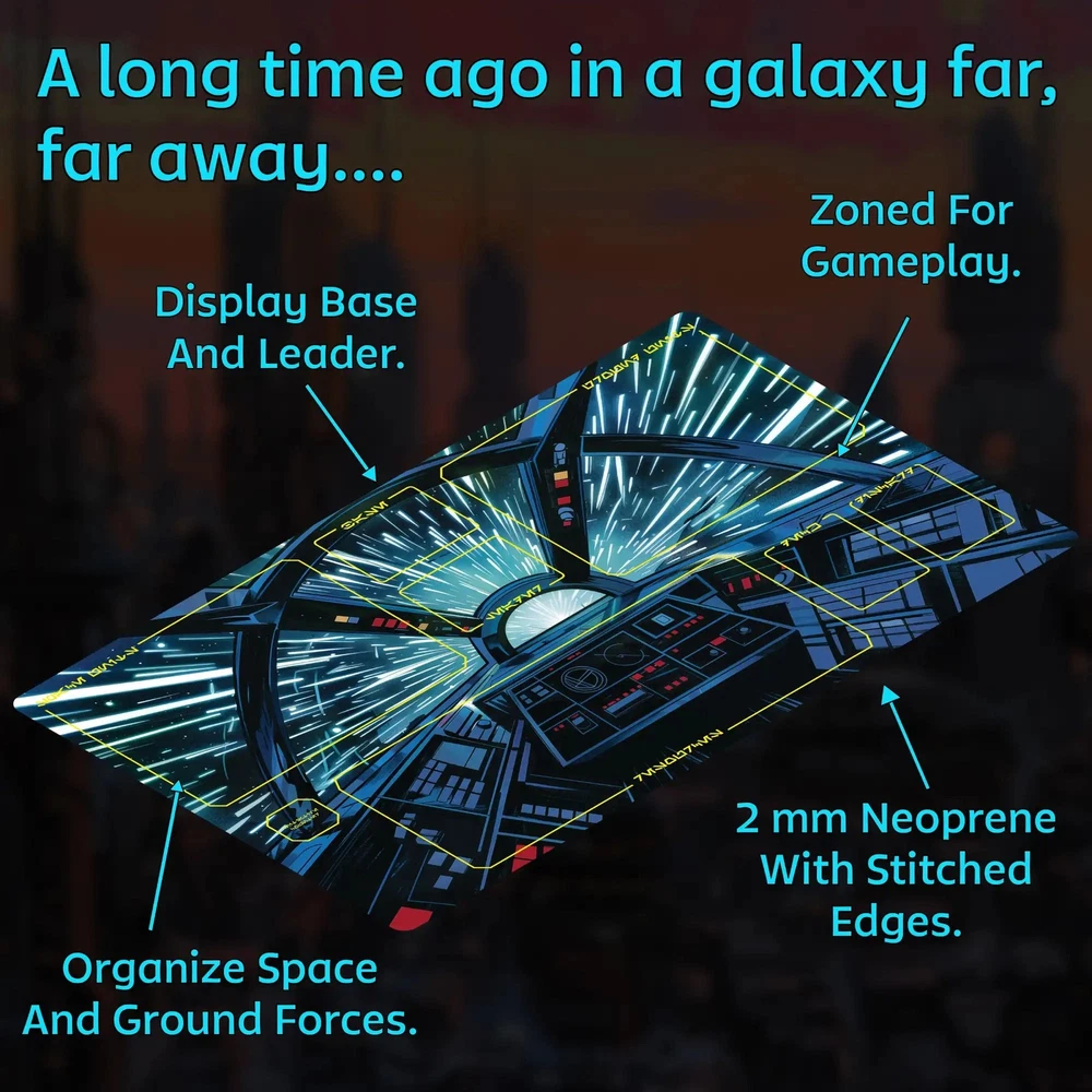 Dive into the galaxy of endless possibilities with our premium custom playmat, designed specifically for Star Wars: Unlimited, Fantasy Flight Games' thrilling new trading card game. Elevate your gameplay and showcase your unique style with our highly customizable playmats. Product Features— • High-Quality Material: Crafted from durable, anti-fray, smooth fabric to ensure your cards glide effortlessly. • Perfect Dimensions: Optimized for Star Wars: Unlimited, with dedicated play zones for organizing your base, leader, ground forces, and space forces. • Fonts: Choose from five distinct fonts to personalize your playmat. • Colors: Select your favorite from five vibrant colors. • Art Backgrounds: Pick from six unique art backgrounds inspired by the Star Wars universe, or submit your artwork for a truly one-of-a-kind mat. • Non-Slip Backing: Secure your playmat during intense gameplay with our non-slip rubber base. Strategic Benefits— • Organized Gameplay: Clearly defined play zones help you keep track of your base, leader, and units in the ground and space arenas, ensuring smooth and strategic gameplay. • Focus on Strategy: Spend less time managing your cards and more time devising strategies to destroy your opponent's base. • Visual Appeal: Enhance your gaming table with stunning Star Wars-themed artwork, making every game session visually immersive and exciting. Perfect Gift for Star Wars Fans— Looking for the perfect gift for the Star Wars or trading card game enthusiast in your life? Our custom playmat is excellent for birthdays, holidays, or special occasions. It's a practical yet personalized gift that any player will appreciate and cherish. Unleash your creativity and enhance your Star Wars: Unlimited experience with a custom playmat designed just for you. Choose your fonts, colors, and backgrounds, or submit your artwork to make your mat uniquely yours. Order now and bring the galaxy to your gaming table! Perfect for— • Organizing your gameplay area. • Easily sliding and picking up your cards. • Protecting your cards from harsh surfaces. • Bringing your games on the go. Playmat features— • High-quality materials: Our mats are printed on 2 mm neoprene with non-slip rubber backs, providing stitched edges for added durability. • Beautifully printed high-definition art: We provide source art at 4K resolution, providing a fantastic final product. • Designed in-house: Playmat designs are done in-house to maximize compatibility with your favorite games. • No logos or advertisements: We want your gameplay to be seamless and free of distractions, so we don't print our logo or website on any of our mats. • Highly thematic: Our art best reflects the game's theme, so you feel as immersed as possible. Playmat details— Size: 24" x 14" (600 x 350 mm) Thickness: 2 mm Edges: Stitched Materials: Neoprene (top), Rubber (bottom) Playmats are printed on-demand and may take 7-14 days to arrive.
