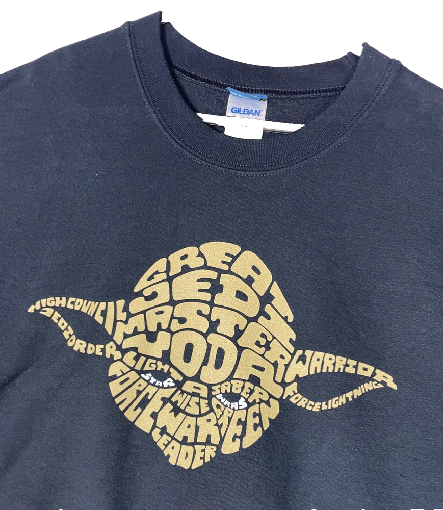 Star Wars Yoda Graphic Print Black Sweatshirt Gildan Sweater Size Medium. IN GOOD USED CONDITION, NO DAMAGE. Measurements in the pictures, please take the time to check the measurements will fit you before ordering: PIT TO PIT 52CM / 20.5 INCHES BACK OF COLLAR TO BOTTOM HEMLINE 62CM / 24.4 INCHES POSTAGE IS EITHER WITH THE DEFALT OF EVRI OR YOU CAN CHOOSE ROYAL MAIL SECOND CLASS. THANKS FOR LOOKING. DISCOUNTS GIVEN ON ORDERS WITH MULTIPLE ITEMS. POSTAGE WILL BE COMBINED WHEN POSSIBLE.