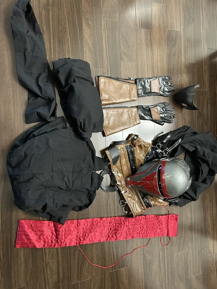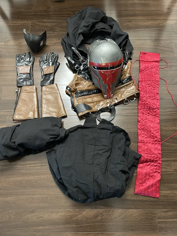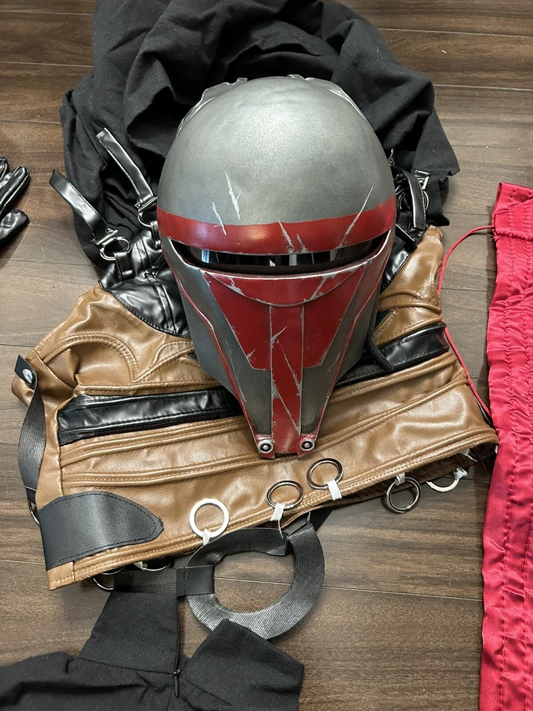 Size small Chest 36-38 inches Waist 30-31 inches Hip 35-37 inches Height 169-170 Helmet is a custom job and never worn which is why the price is as it is. Fits a head size 23 and below. Comes with additional padding if a firmer fit is needed Embrace the dark side with this Star Wars Darth Revan costume. Perfect for any fan of the iconic franchise, this costume includes all the necessary pieces to transform into the powerful Sith Lord. The intricate details and high-quality materials make this costume ideal for cosplay, reenactments, or Halloween. Stand out at any event with this impressive Star Wars costume and feel the power of the Force.