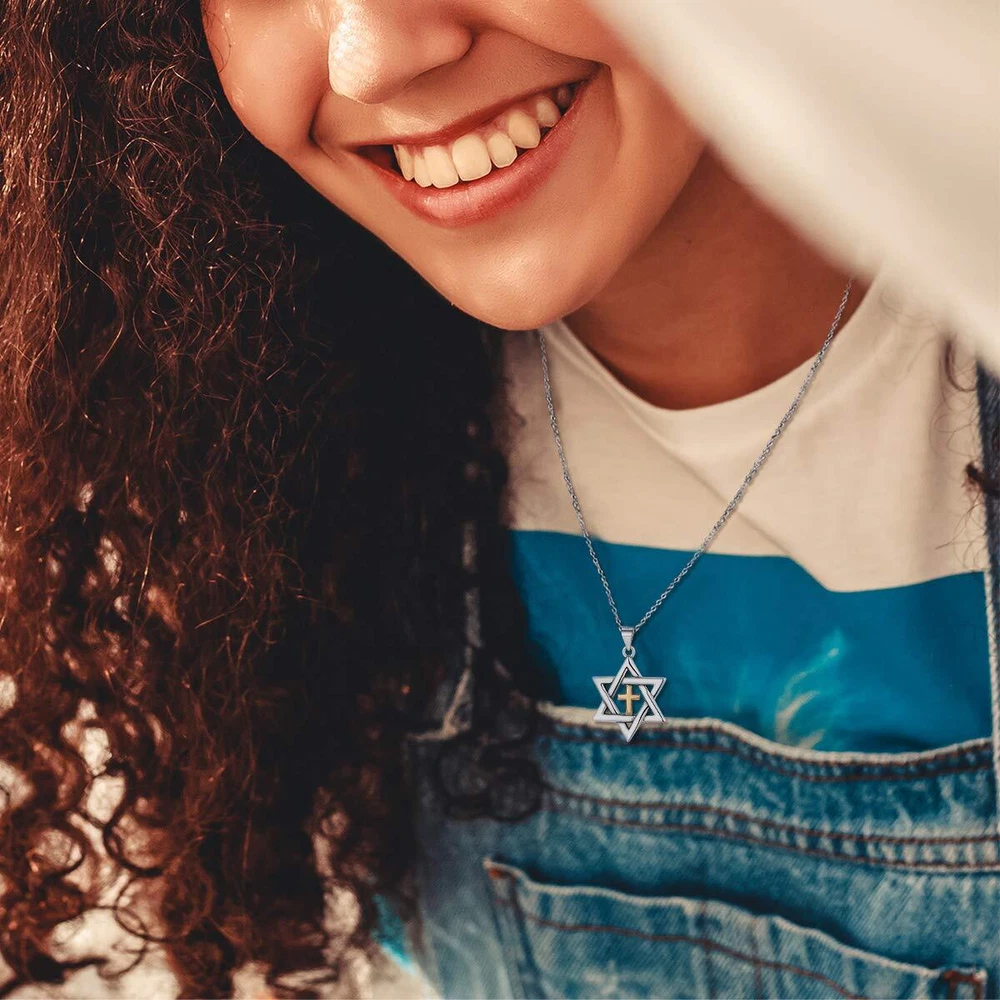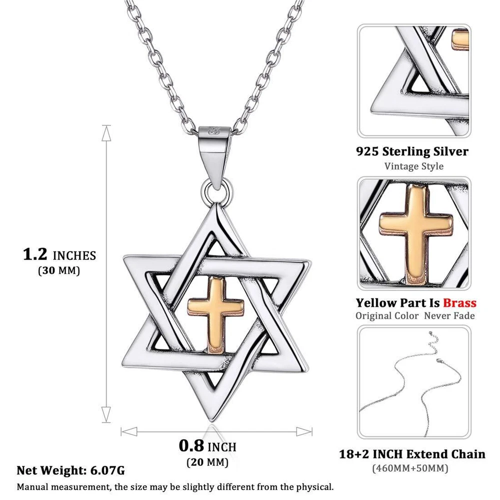 Star of David Necklace Silver Cross Star of David Pendant Necklace Gold&Silver Two Tone Pendant Religious Jewish Jewelry for Women Men, Chain 18'' ❤【 Unique Design 】Cross Star of David Pendant, classic and fashion, this silver&gold two tone pendant necklace will be a real highlight for every man/woman. He/She will never go out of fashion. This necklace is the exquisite choice as a gift for a surprise. ❤【 High-quality Materials 】Genuine 925 sterling silver and brass(yellow part is brass, never fading), passed strict skin test grants allergy free, nickel-free, no harm to your health. Ideal big star necklace for women and men of all ages ! ❤【 Necklace Specification 】Pendant Length: 1.2 Inches(3.0cm); Pendant Width: 0.8 Inch(2.0cm); Chain Length: 18+2 Inches (46+5cm)/Resizable; Clasp Type: Lobster-Claw-Clasps. ❤【Best Gifts for Women&Men 】This vintage star of david necklace for women gold comes with a Delicate Gift Box, READY for Giving or Receiving. A wonderful gift for yourself, your lovers, your friends, your family (father, brothers, mother, sisters) or other people dear to you on Birthday, Valentine's Day, Mother's Day, Graduation, Wedding, Anniversary, Engagement, and any special dates to you. ❤【Exquisite Package】Package: 1 x necklace, 1 x gift box, 1 x polishing cloth. We can promise the star of david cross necklace is a beautiful pendant necklace with high quality. Your satisfaction is our unremitting pursuit, any problem, please feel free to contact us. Description ♚Nofade Silver♚---Professional 925 Sterling Silver & Brass Jewelry Brand Nofade Silver is committed to providing high-quality products, original design and excellent service. Every jewelry has its own unique meaning, give it to your loved one, indicating that she or he means unique to you, unparalleled and irreplaceable. Material&Quality: Hypoallergenic 925 sterling silver & Brass (yellow part is brass, never fading), Lead-Free & Nickle-Free, no harm to your health. Ideal jewelry for women and men ! ➣Package Included: ---1 Pair of Earrings ---1 x Jewelry Polishing Cloth ---1 x Gift Box ➣Jewelry Maintenance: ---Keep away from water, sweat and cosmetics; ---Do not wear it in shower, swim, sleep, sport and wash something; ---Do not exposed to air for a long time, put into sealed bag or box will be better; ---Please use soft cloth to clean and wear carefully, do not pull too hard or throw. ➣About Customer Servies --- Within 24 Hours Fast Response--Faster Customer Service; ---100% Quality Inspection--Strict Quality Control; ---60-Day Money Back or Exchange Guarantee--Best After-sales Warranty. Shipping We offer FREE shipping on all orders! We ship within Three business days of payment, usually sooner. We use a selection of shipping services such as UPS, FedEx, USPS etc. We only ship to the lower 48 states, no APO/FPO addresses or PO Boxes allowed. Local pickups and combined shipping options are not provided at this time. Return You can return a product for up to 30 days from the date you purchased it. Any product you return must be in the same condition you received it and in the original packaging. Please keep the receipt. Feedback Customer satisfaction is very important to us. If you have any problem with your order, please contact us and we will do our best to make you satisfied. Contact Us If you have any queries, please contact us via ebay. We usually respond within 24 hours on weekdays. Please visit our eBay store to check out other items for sale! Thank you for shopping at our store.