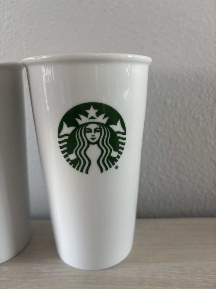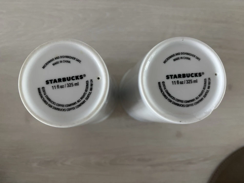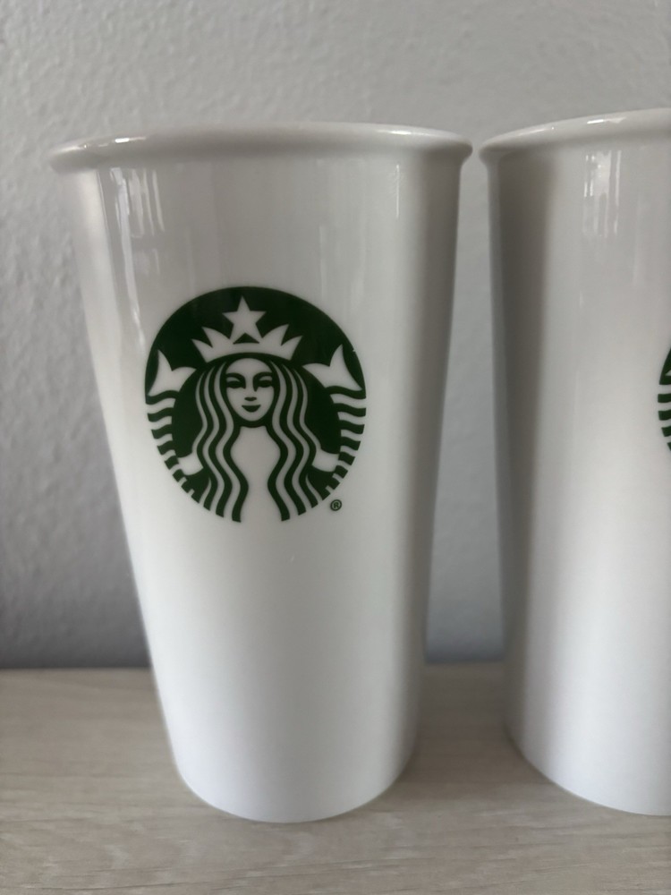 Set of two Starbucks tumblers, no lids. One has a small chip on the bottom. See pics before purchasing.