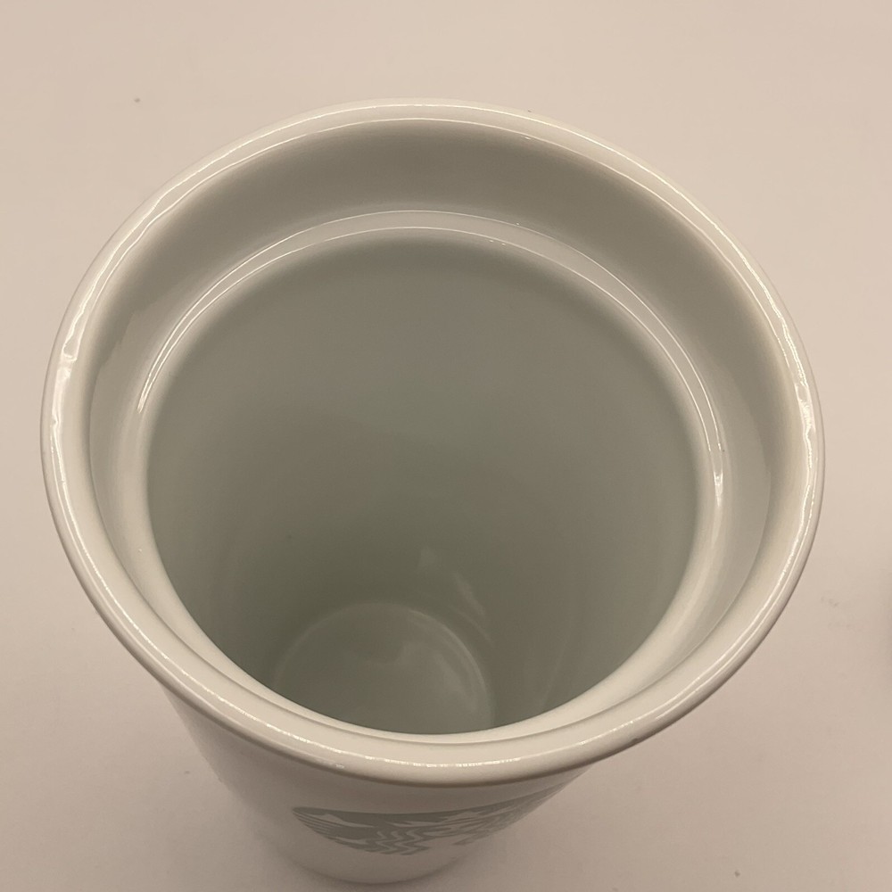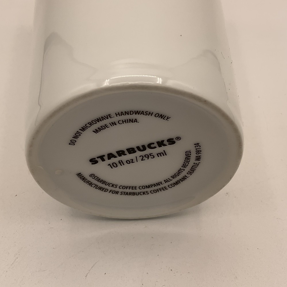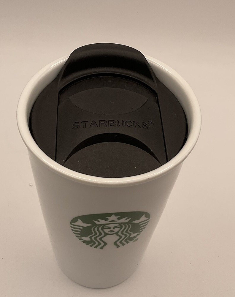 The Starbucks 10oz Ceramic Double Wall Tumbler Travel Mug features the iconic Siren Logo on a white mug made in China. This original Starbucks mug is designed for coffee and tea enthusiasts, perfect for on-the-go use with its double wall construction. It is a collectible item in the advertising and food & beverage categories, specifically tailored for Starbucks fans who appreciate quality mugs for their hot beverages. See pictures as part of description.