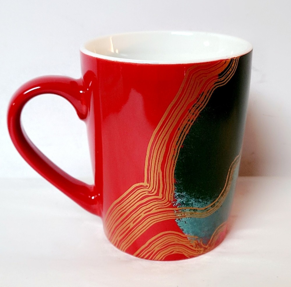 Add a festive flair to your coffee or tea time with this Starbucks 2021 Holiday Coffee Mug Cup. The mug features a colorful design of green, red, and gold, perfect for the holiday season. Measuring 4 inches tall and 3 inches wide, this mug can hold up to 10 fl oz or 296 ml of your favorite hot beverage. Crafted in China, this original Starbucks Christmas Mug is both microwave and dishwasher safe, making it a convenient addition to your kitchen. Whether you're a Starbucks collector or just looking for a cheerful mug to enjoy your morning coffee, this mug is sure to brighten up your day.