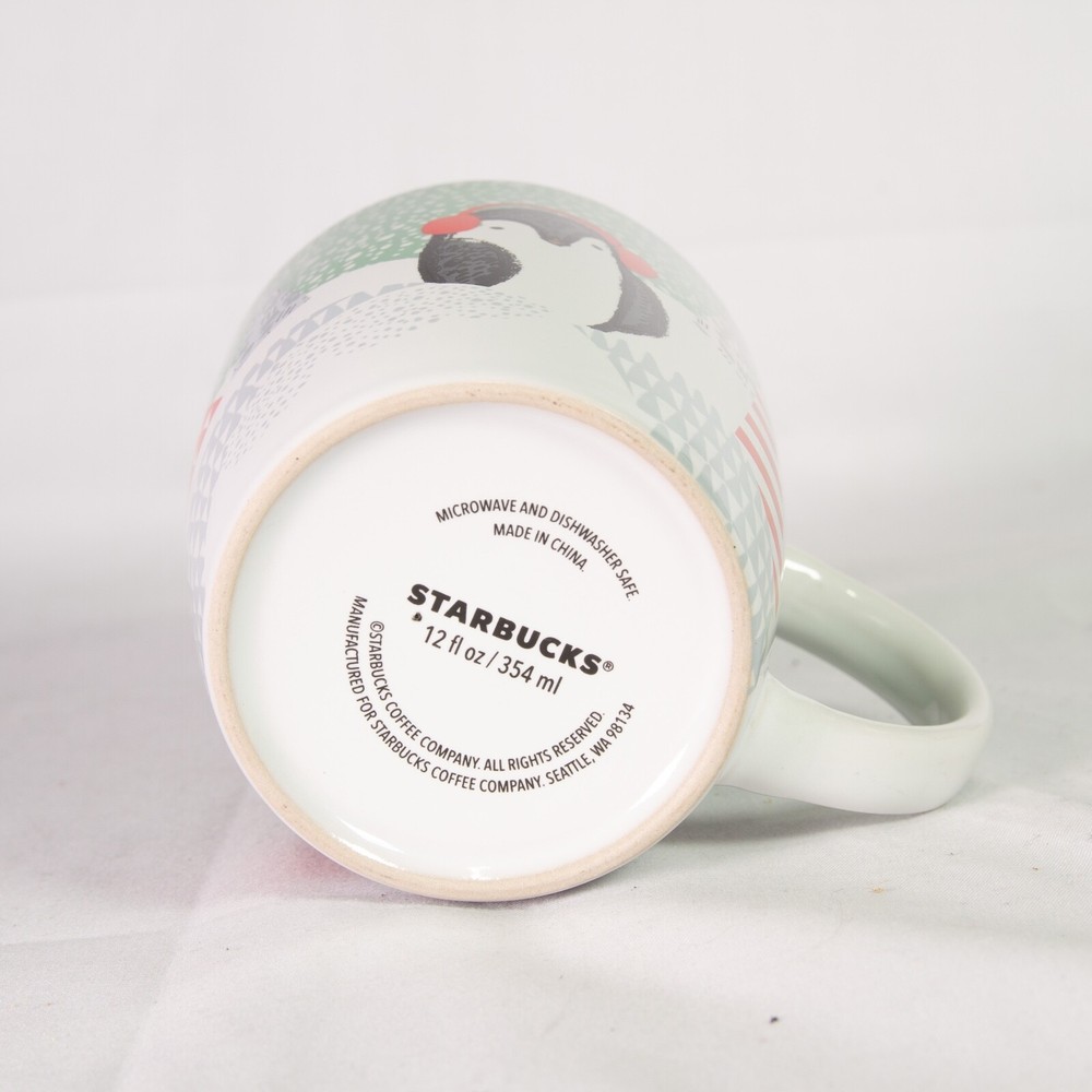 Starbucks 12oz Holiday Penguin Mug with Snow Tree Design