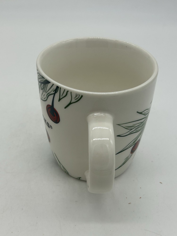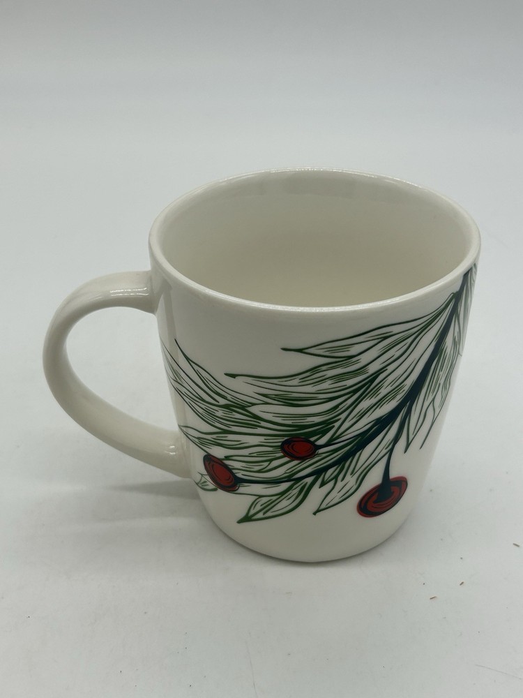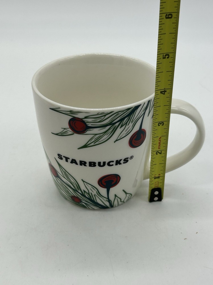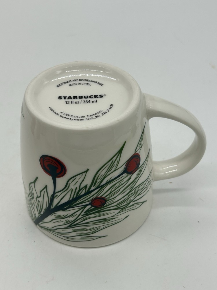 Starbucks Holiday 12oz Coffee Mug White w/ Green Branches Red Holly Berries 2020