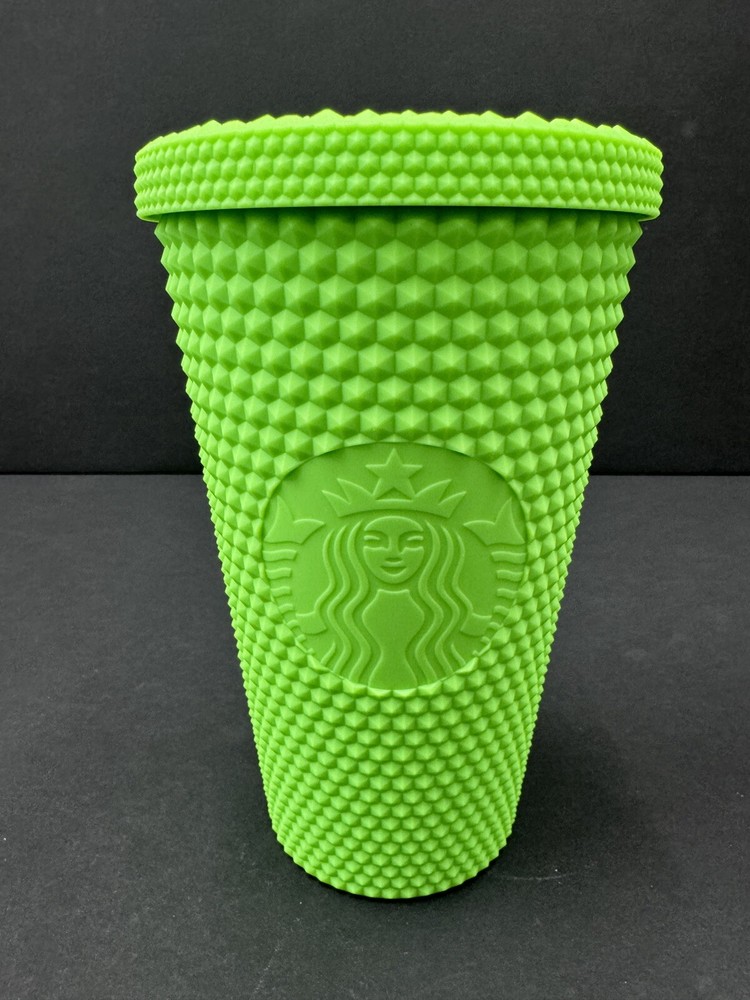 No straw. Indulge in your love for coffee with this Starbucks Fall 2021 16 oz Studded Matte Green Grande Tumbler. The tumbler is perfect for coffee and tea lovers and features a sturdy design that is sure to last for years. The tumbler is created with a matte green finish that adds a touch of elegance to your drinkware collection. The tumbler is an original Starbucks product that was created in 2021 and comes from China. It is perfect for collectors and enthusiasts alike who appreciate the coffee and tea theme. The tumbler is designed to hold 16 oz of liquid and does not come with a straw. Get your hands on this unique Starbucks tumbler today!