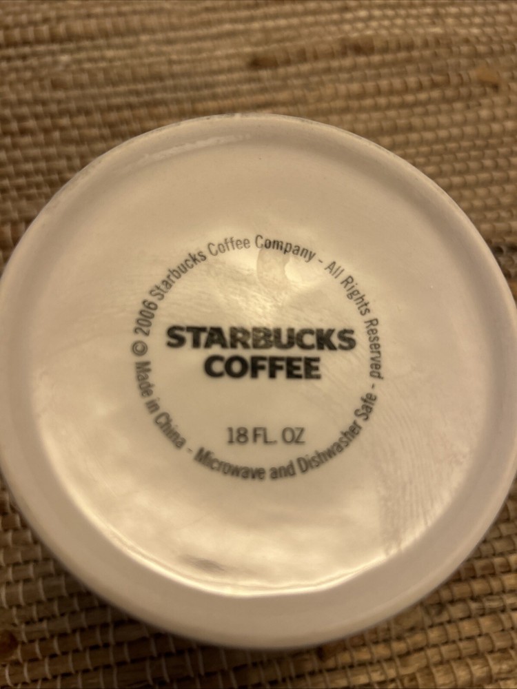 Color:White and BlueBrand:StarbucksCountry/Region of Manufacture:ChinaType of Advertising:MugOriginal/Reproduction:OriginalDate of Creation:2006Theme:Coffee & Tea
