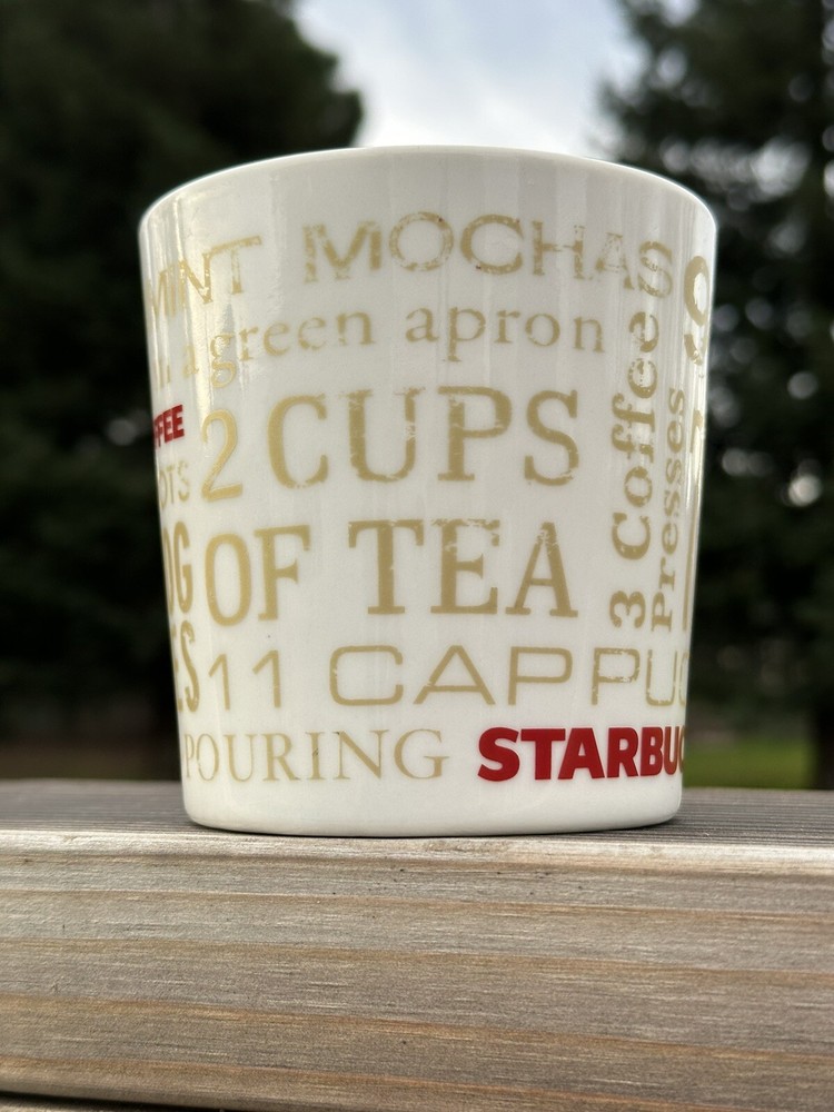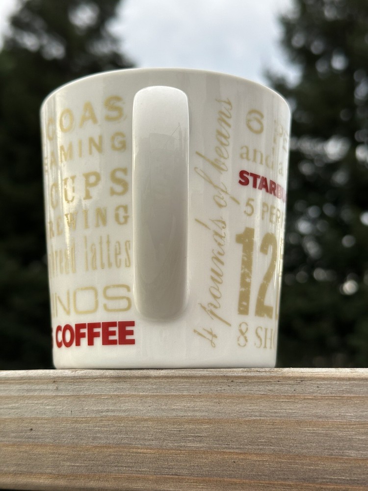 Get into the holiday spirit with this festive Starbucks coffee mug. Adorned with the classic red, white, and gold color scheme, this 14oz ceramic mug features the iconic Starbucks logo along with the "12 Days of Christmas" theme. Perfect for sipping your favorite coffee or tea while sitting by the fireplace, this mug would make a great addition to any collector's collection. Made by the Starbucks Coffee Company in 2008, this mug is a must-have for any coffee lover or holiday enthusiast. Good condition Clean Smoke free Will package carefully
