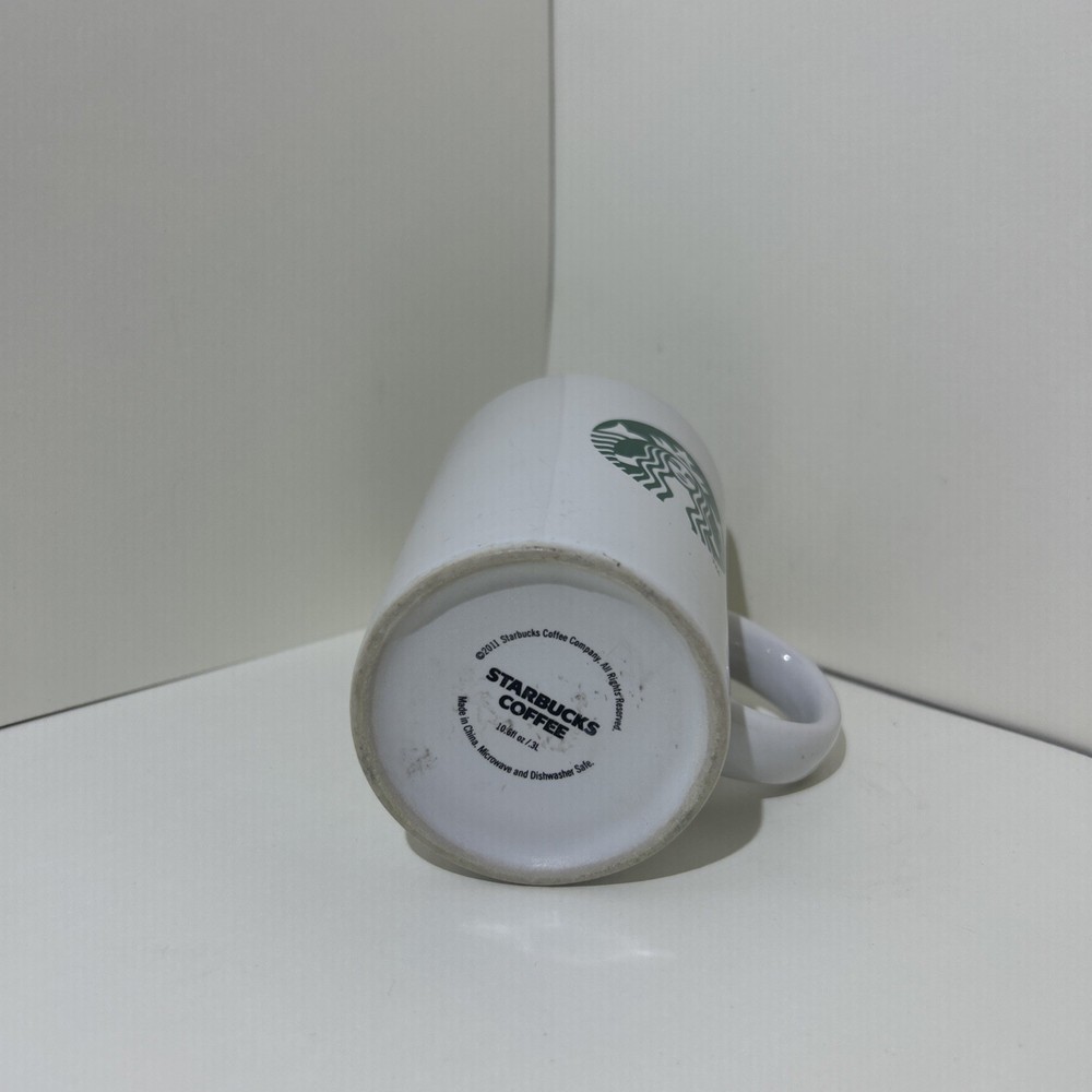 Add a touch of coffee culture to your morning routine with the Starbucks 2011 Coffee Mug. Crafted from high-quality white ceramic, this sleek tea cup is a perfect vessel for your favorite hot beverage. Its 10 Oz capacity is ideal for that perfect amount of coffee or tea to start your day. The mug features the iconic green siren logo, synonymous with the Starbucks brand, making it a great collectible item for enthusiasts. With its original design dating back to 2008, this mug blends timeless style with functionality, ensuring it's a great addition to any coffee or tea lover's collection. Seller Note: Bin 1