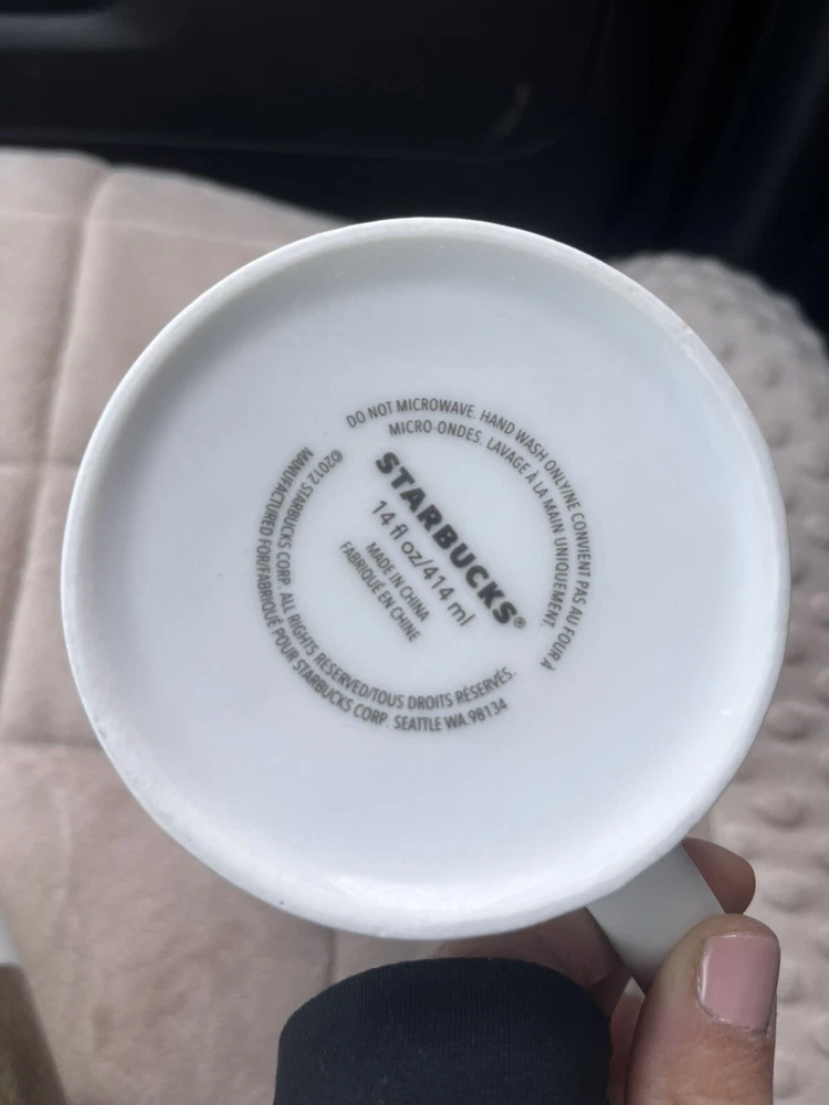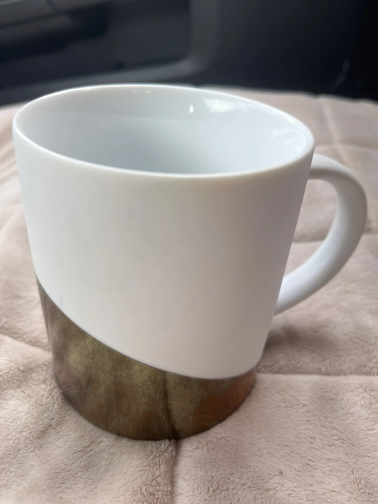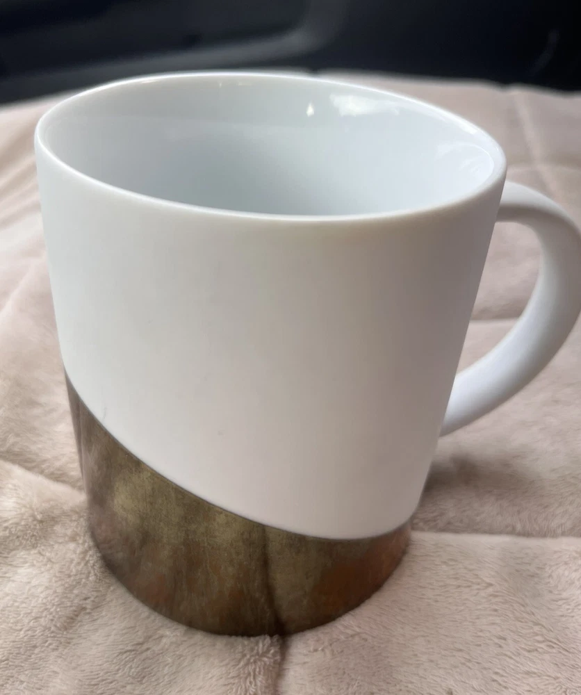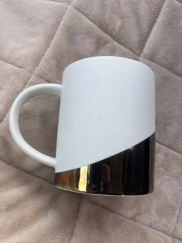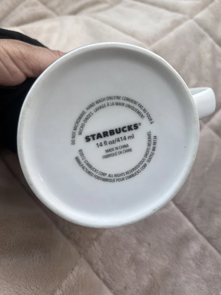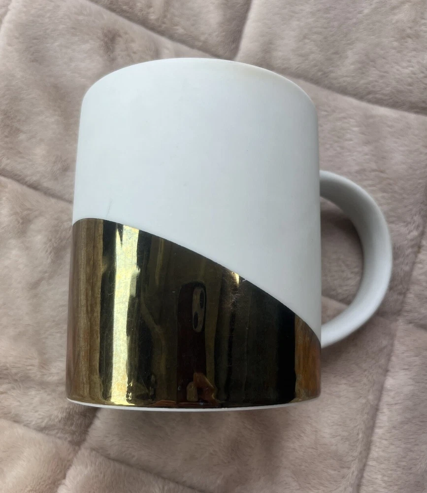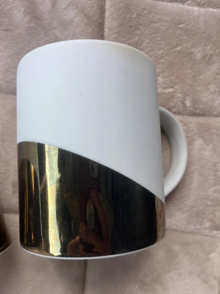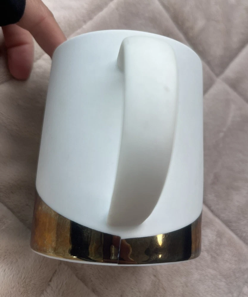 Pre loved so some spots of coffee stains. Pictured. This Starbucks mug set is a must-have for any coffee lover, featuring a stylish matte white finish with an asymmetric metallic gold design. The set includes two 14oz mugs, perfect for enjoying your morning coffee or tea. The mugs are an original Starbucks product and feature the iconic Starbucks logo. The brand is known for its high-quality products, and this set is no exception. The mugs are in great shape and have been used so some signs of wear and tear. They are perfect for collectors or those who want to add a touch of style to their daily coffee routine.