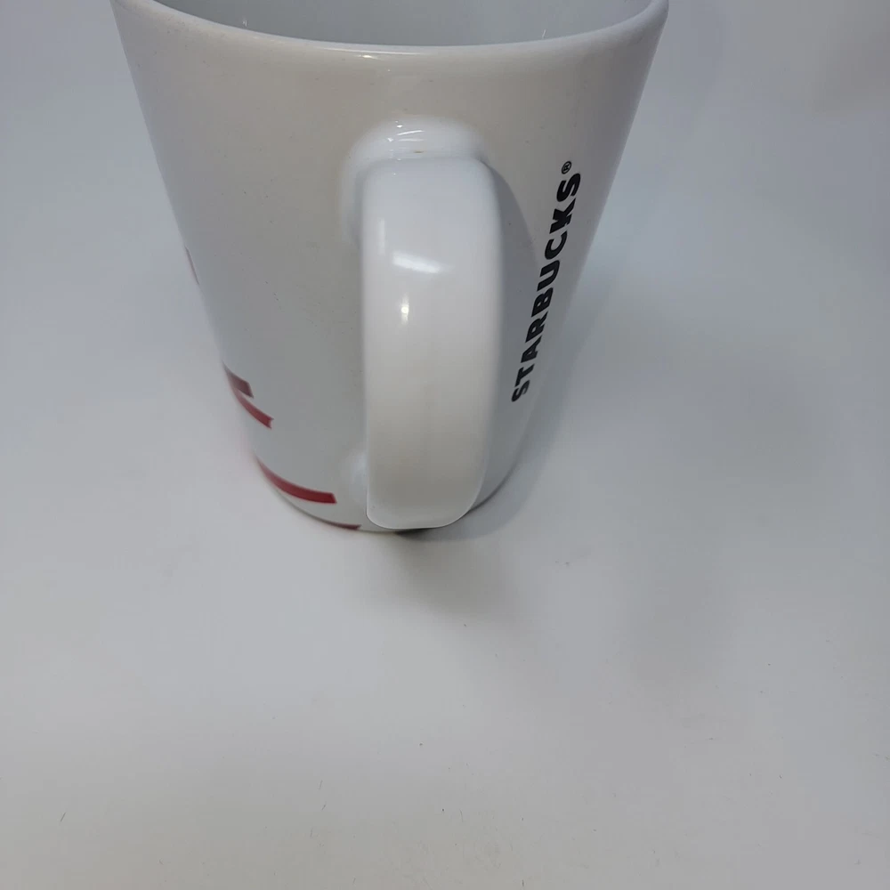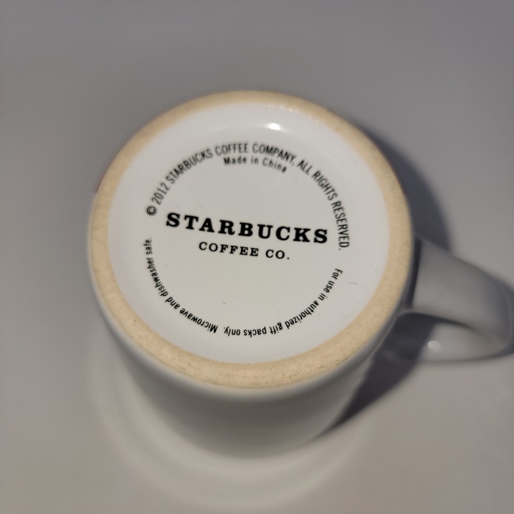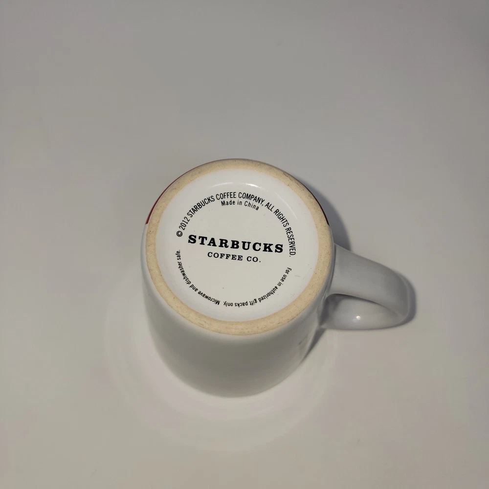 STARBUCKS 2012 Holiday Coffee Tea Mug White with Red Tree 12 Oz Christmas. Good condition. Please see photos for exact item you will purchase Thanks for looking Fast Shipping