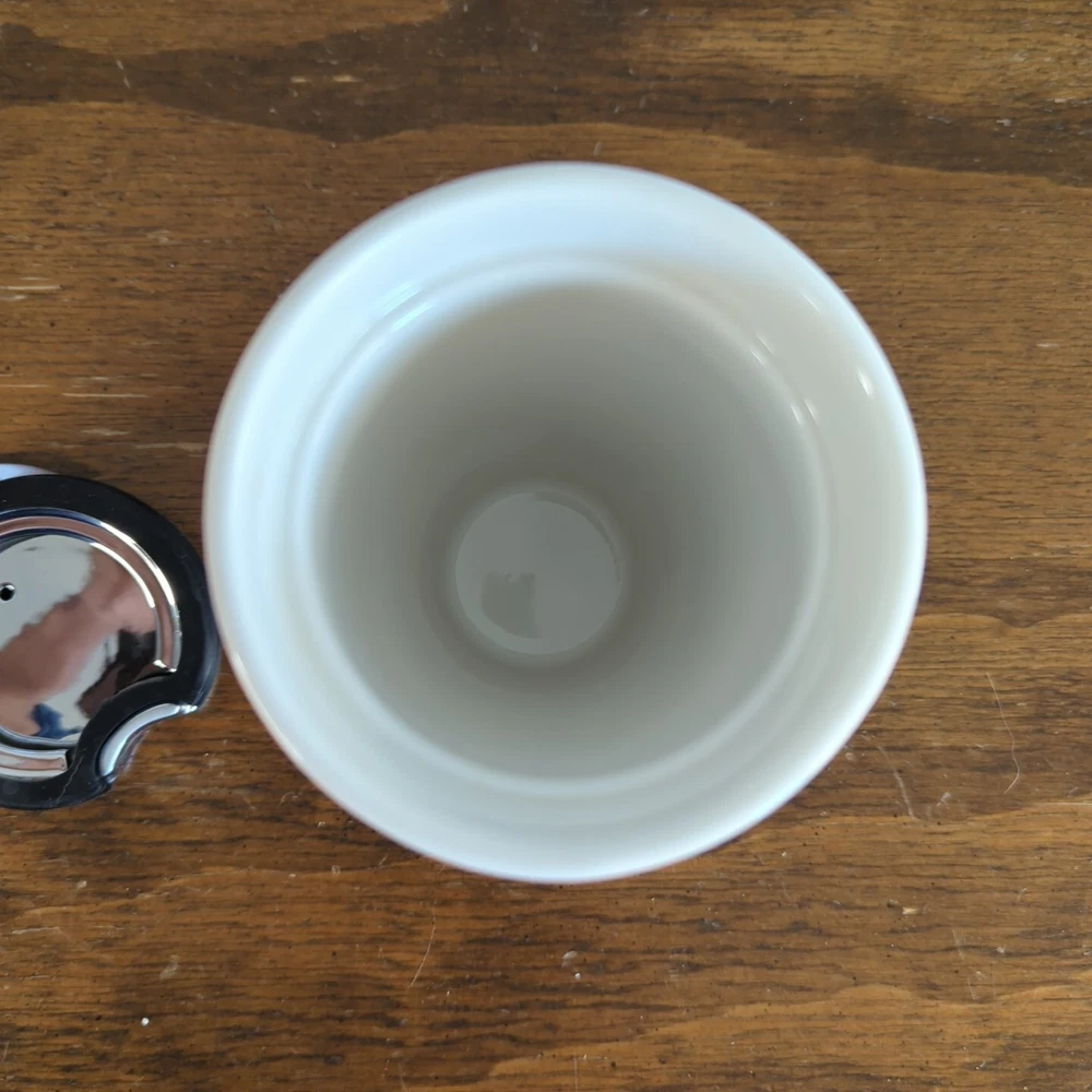 This Starbucks coffee mug is a must-have for any coffee and tea lover! Crafted in 2014 with high-quality ceramic material, this 10 oz mug features a stunning white color and chrome studs design. The mug is perfect for enjoying your favorite hot beverage and adding a touch of style to your morning routine. The Starbucks brand is known for its exceptional quality and this mug is no exception. It is an original piece and has not been modified in any way. Whether you're a collector or just looking for a durable and stylish mug, this Starbucks coffee mug is a great choice.