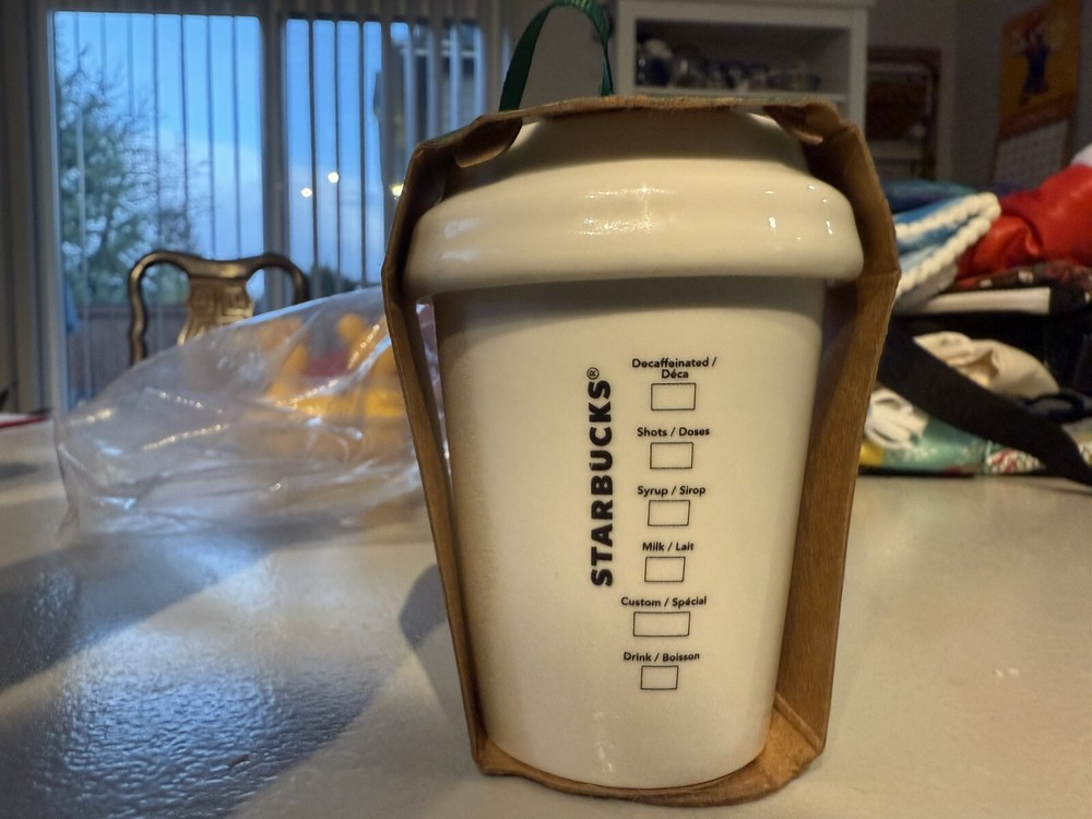 Starbucks Coffee Travel Mug Red 2016 Ceramic Tumbler No Lid 12 FL Oz