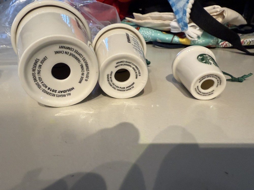 This set of three Starbucks ornaments is the perfect addition to any collection. Featuring the iconic Starbucks logo and nesting design, these ceramic cups are a must-have for coffee and tea enthusiasts alike. The green and white color scheme adds a touch of festive charm, making them a great choice for displaying during the holidays. Created in 2016 and originating from China, these ornaments are an original piece and have not been modified. They are featured under the Starbucks Ornament category and are perfect for collectors of Starbucks advertising memorabilia.
