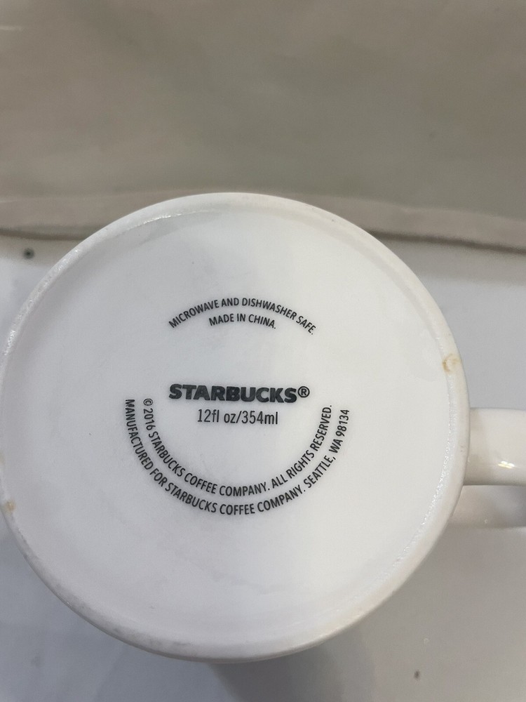 $ 7.92Starbucks 2015 White 12 oz Coffee Mug with Gold Scroll Diamond Design