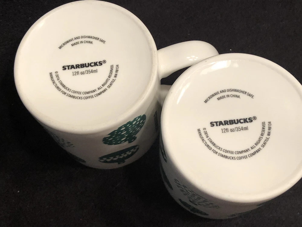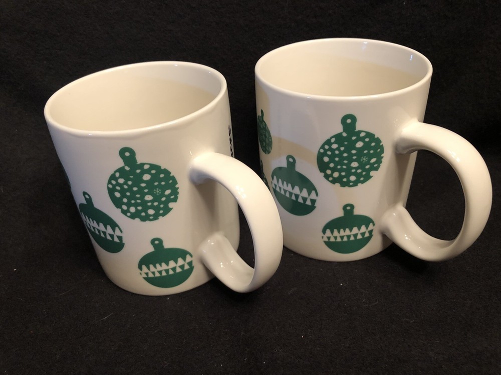 This is a Set of 2 Starbucks Christmas Mugs/Cups from 2016. They are basic White with a repeating round Green Ornament design. They hold up to 12 ounces of your favorite beverage including Coffee and Tea. Mugs are in good pre-owned condition. There are no nicks, chips, cracks or repairs. Please review and enlarge all photos for additional details and views. Shipped with USPS Ground Advantage.