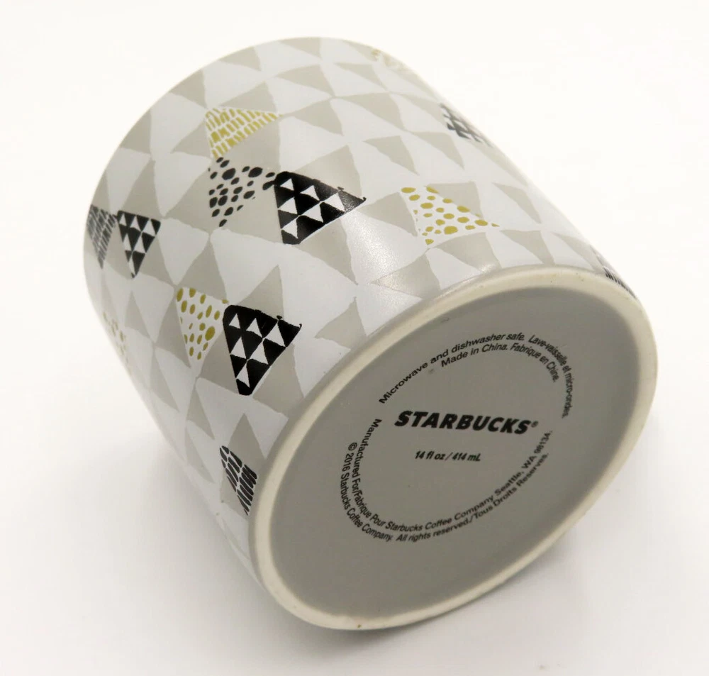 STARBUCKS 2016 Gray Geometric Trees 14 fl oz - Coffee Tea Cup Mug Square Handle - Starbucks Holiday Mug. In great condition with little to no wear! Perfect addition to your Starbucks mug collection - Holiday Mug! Dimensions: 3 1/2"H x 5"W (including handle) Item will ship USPS Priority Mail