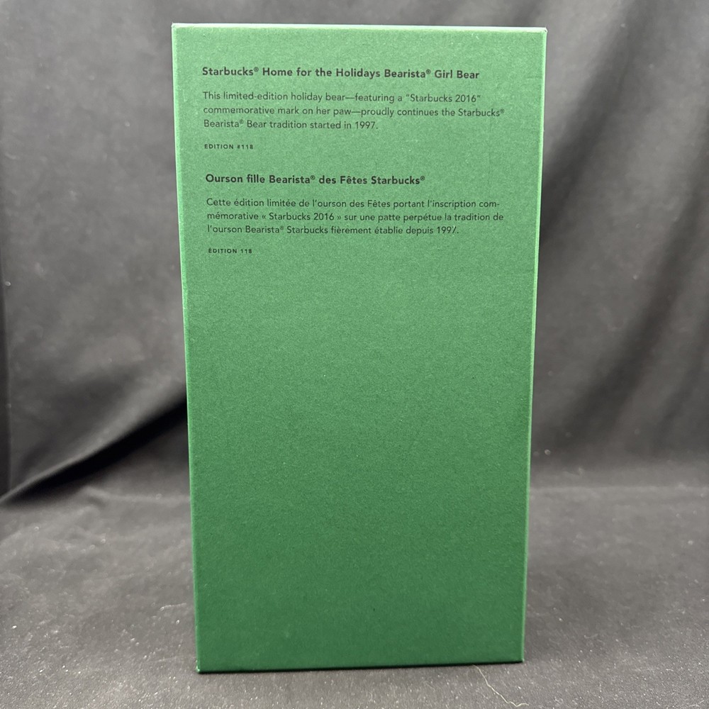 This limited edition Starbucks bearista girl is perfect for any collector or fan of the coffee and tea brand. Created in 2016, this original piece features a multi-colored design, adorable winter flap cap and comfy clothes which inspire a calm coffee time. Whether you're looking to add to your collection or just want a unique Starbucks item, this bearista girl is a great choice. With fast shipping, you can enjoy this Starbucks Home for the Holidays bearista girl in no time. Don't miss out on the opportunity to own this special piece of Starbucks history.