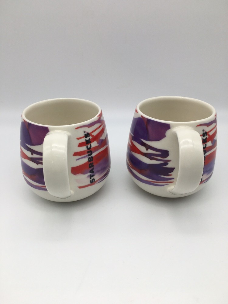 Set Of 2 Starbucks 2016 Watercolor Coffee Mugs Ceramic 12oz Red Purple Abstract. Condition is pre owned. Shipped USPS Ground Advantage. • 12 oz / 355 ml • No cracks or chips, please see all photos
