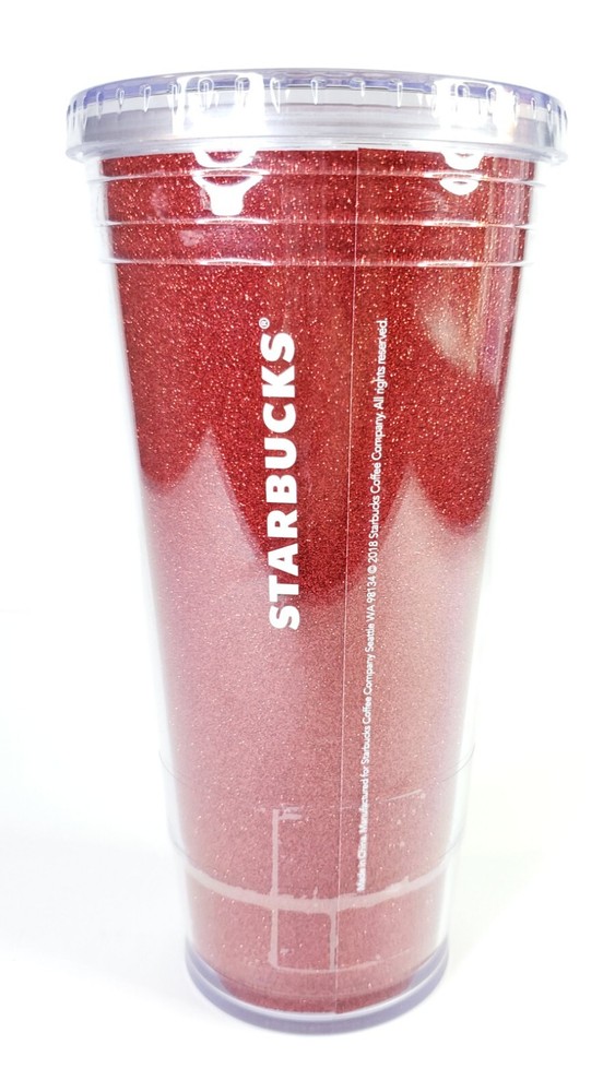 Starbucks 2018 Holiday Glitter Red 16oz Cold Cup Tumbler with Clear Lid