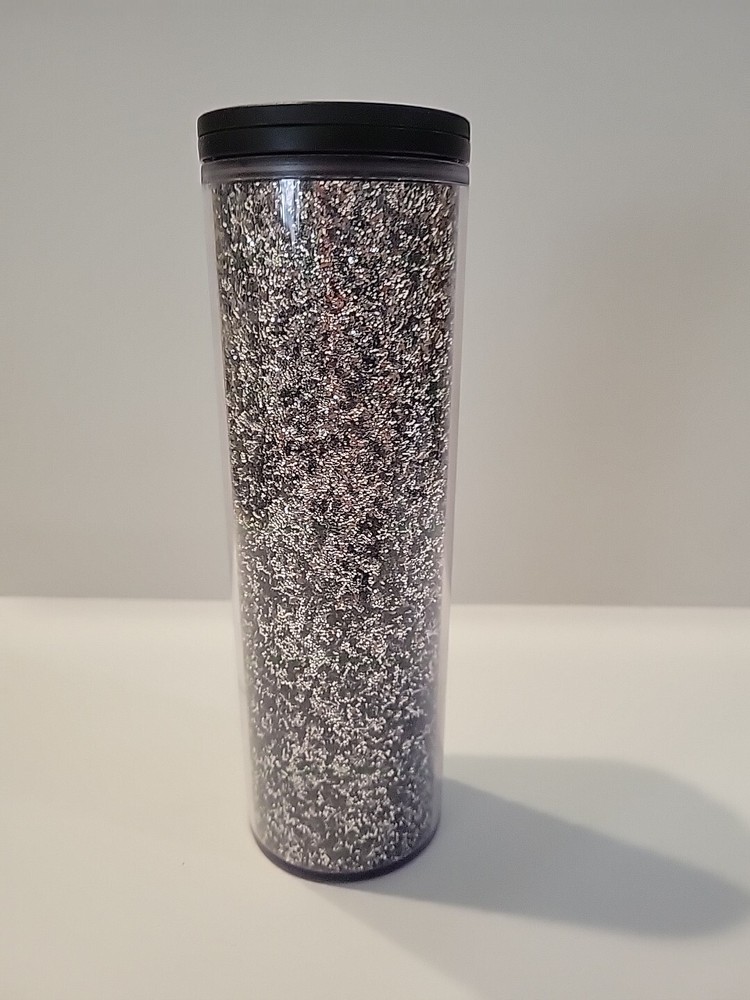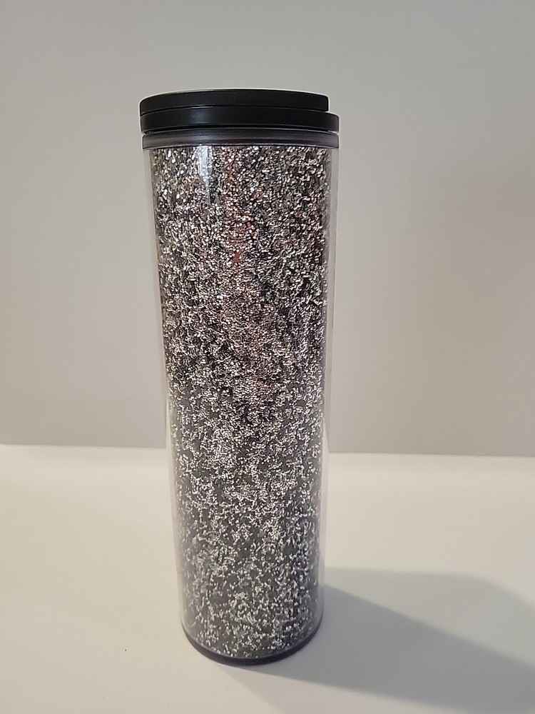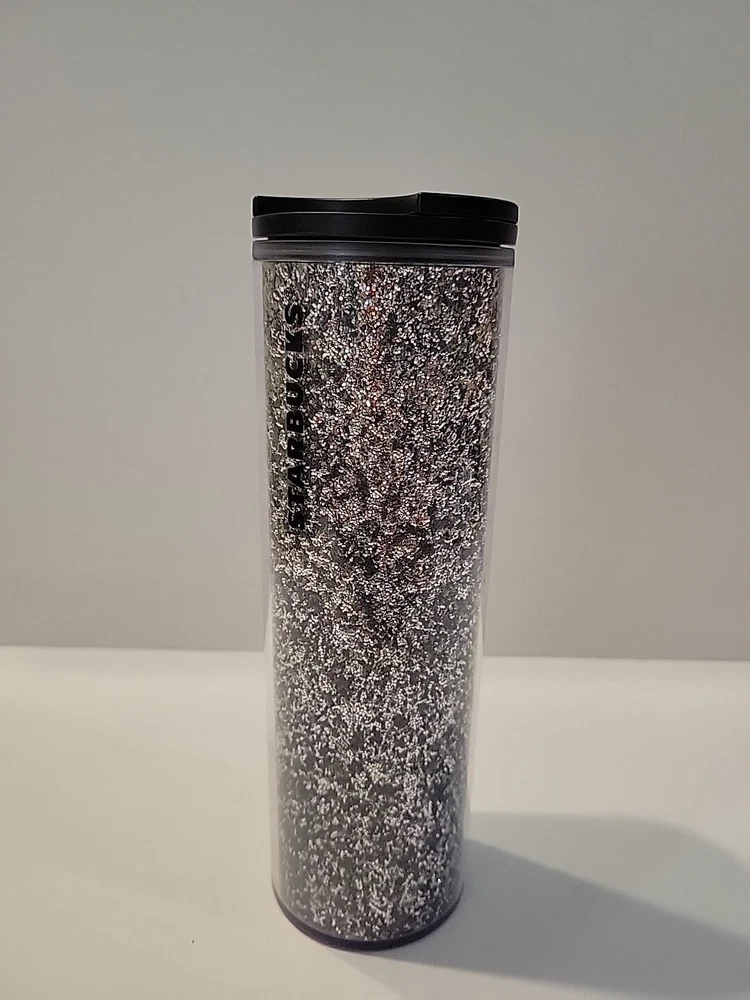 Love this Starbucks holiday cup! The silver glitter design is festive and stylish, and it keeps my drinks hot or cold for hours. The size is perfect for on-the-go, and it's still in great condition. A must-have for any coffee lover!