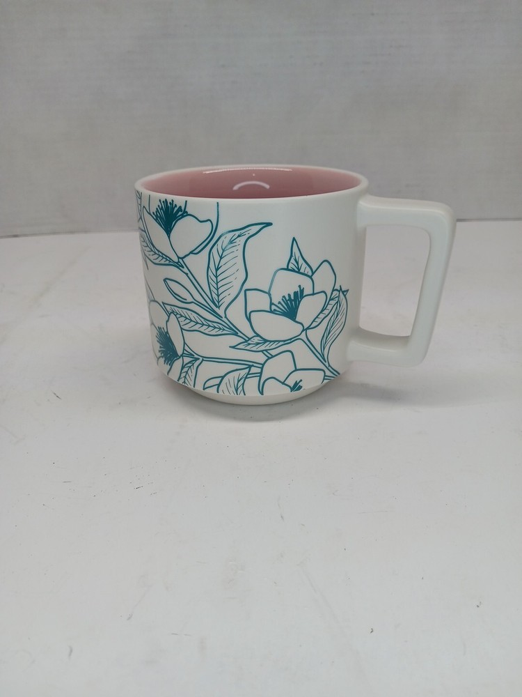 HomeStarbucks 2019 Spring Floral Ceramic Mug 14oz Teal Pink Coffee Cup