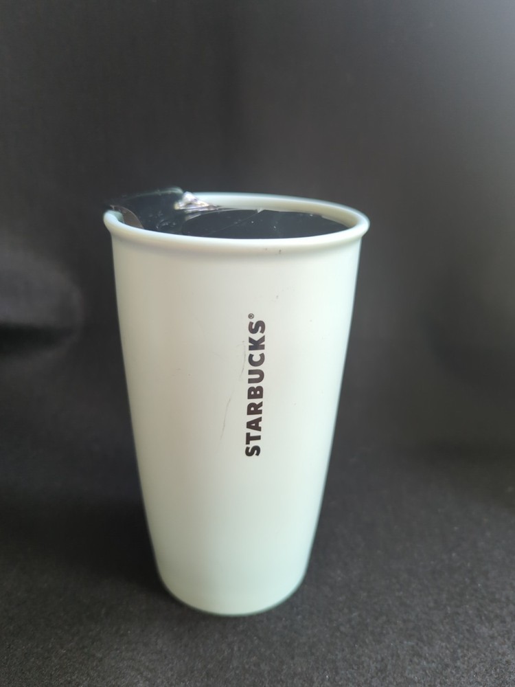 This Starbucks 2019 "Love" Ceramic Travel Mug was released in 2019 by Starbucks for Valentine's Day. It has a light blue background with the word "Love" and a heart and flower design in a stitched pattern. It is in "Very good" used condition, with a faint mark near the Starbucks logo. It holds 12 ounces of hot or cold liquids. It is 6 inches tall x 3 1/2 inches in diameter. Please let me know if you have any questions or would like some additional photos.