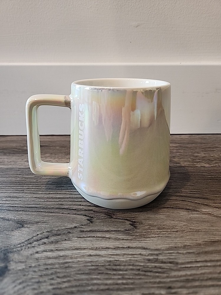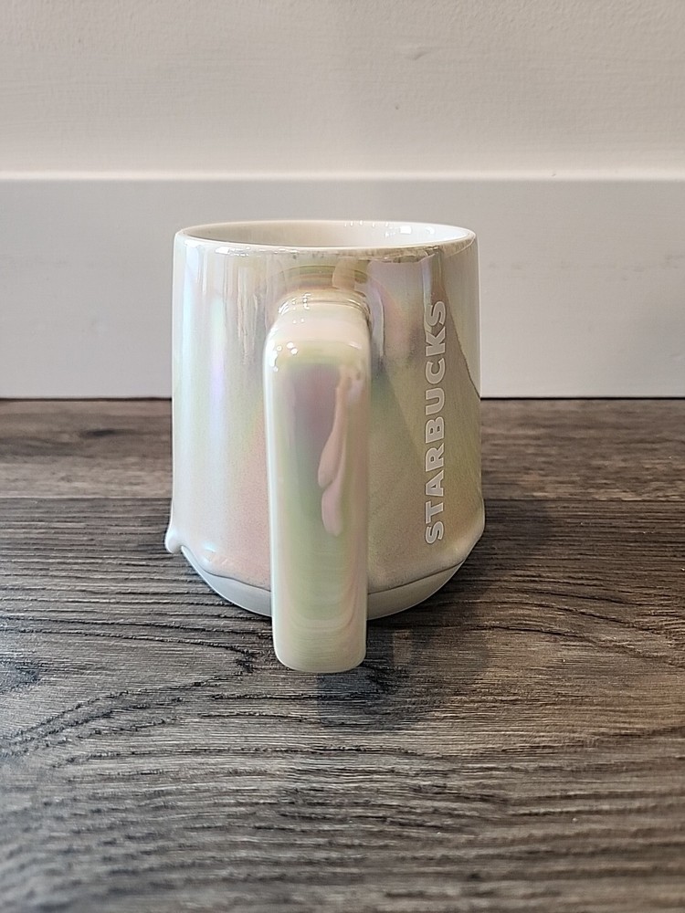 HomeStarbucks 2019 White Pearl Iridescent Rainbow Drip Holiday Mug 12 oz Coffee Cup